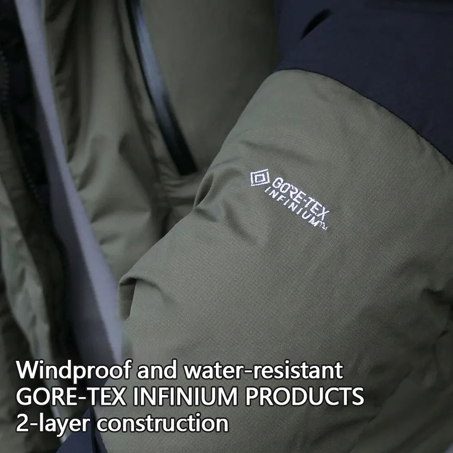 Material: Outer/30D GORE-TEX® INFINIUM™ WINDSTOPPER® Insulated Shell (2 layers) (Outer/100% nylon, Inner/ePTFE) Filling/CLEANDOWN® 光電電® (72% down, 20% rayon, 8% other feathers) Lining/NylonTaffeta (100% nylon)