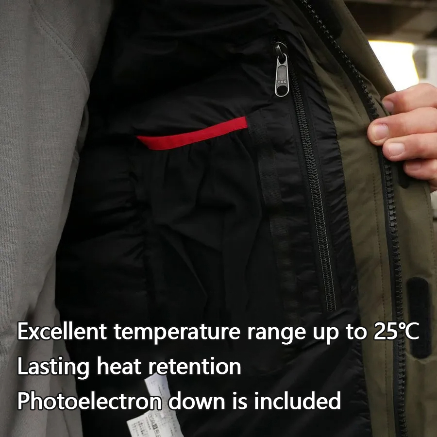 This down jacket has excellent heat retention and is suitable for astronomical observation and snow hiking in the middle of winter. The outer layer is made of GORE-TEX INFINIUM~2-layer structure, which is windproof and water resistant.