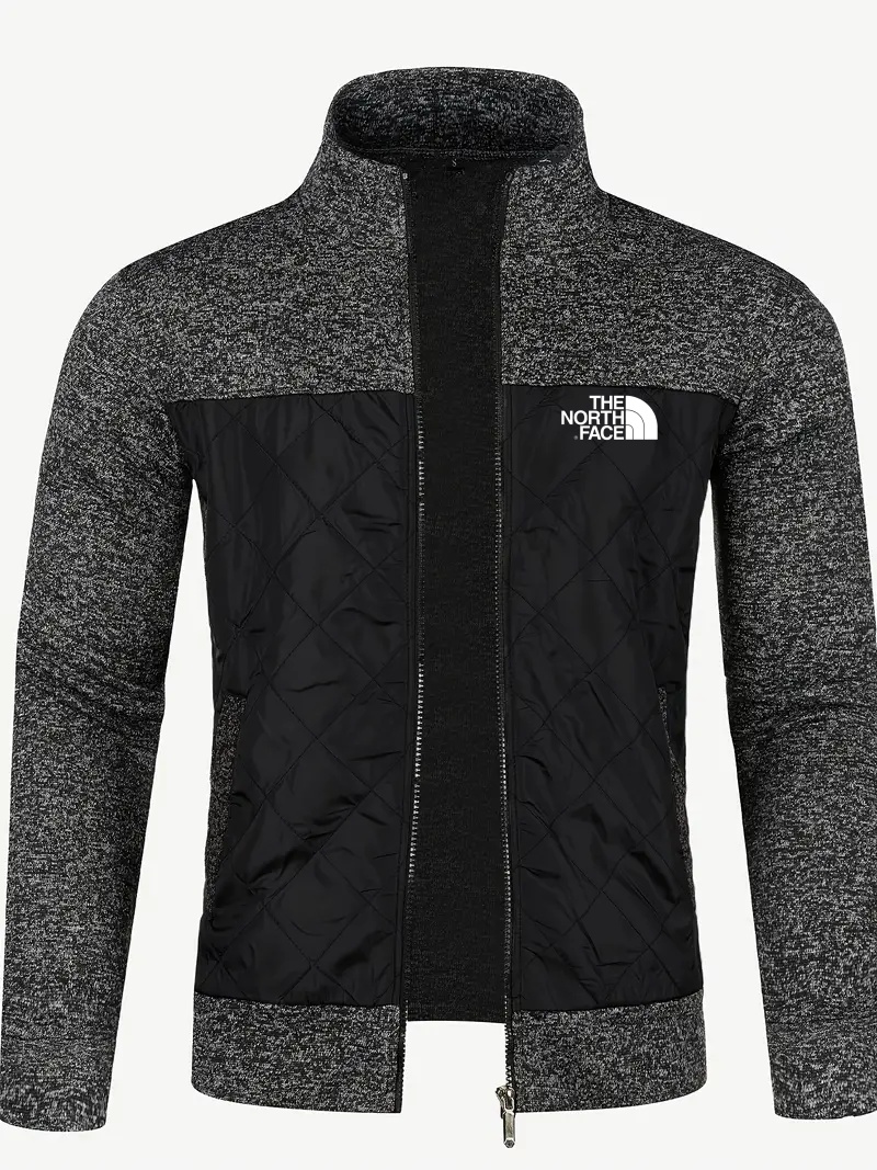 2025 TNF®-Men's knitted cardigan jacket, autumn and winter casual stand-up collar full zipper jacket, long sleeve regular fit cardigan