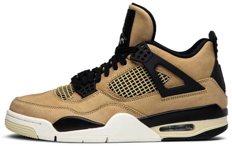 Air Jordan 4 Retro 'Mushroom' was released in September 2019 as Jordan Brand celebrated the model's 30th anniversary. Dressed in a unique colorway of Mushroom . black . Fossil and Pale Ivory . the women's sneaker stays true to the 1989 original silhouette designed by Tinker Hatfield. It features a shimmering Jumpman logo on its tongue and heel . a premium upper . mesh netting on the quarter panel and visible Air in the heel.