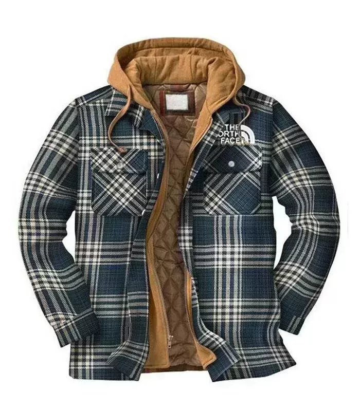 Casual Fashion Plaid Print Men's Hooded Coat
