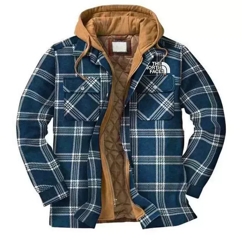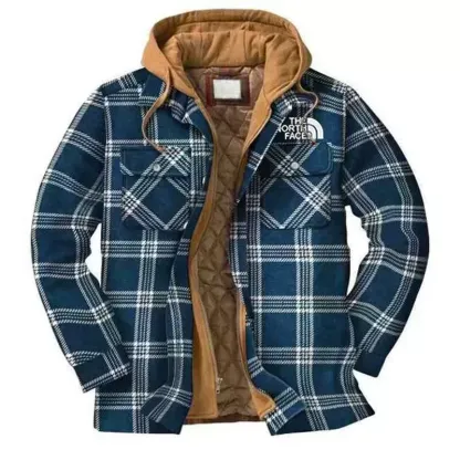 Printed Plaid Hooded Mens Winter Long Sleeve Coat