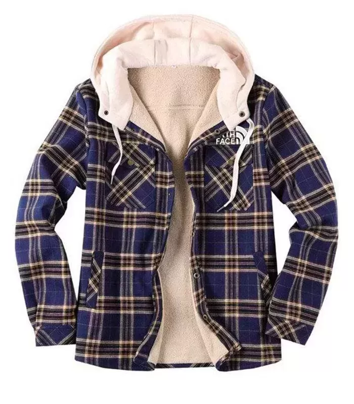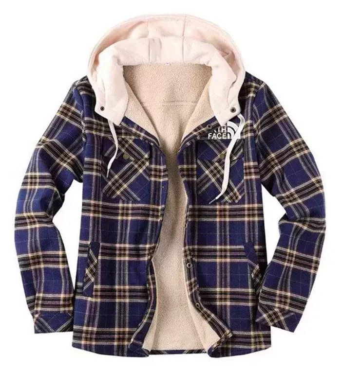 Casual Plaid Print Men's Hooded Coat