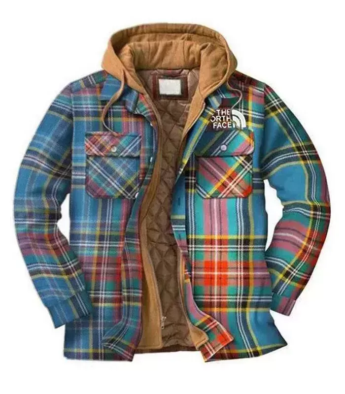 Colorful Plaid Print Fashion Men's Hooded Coat With Pockets