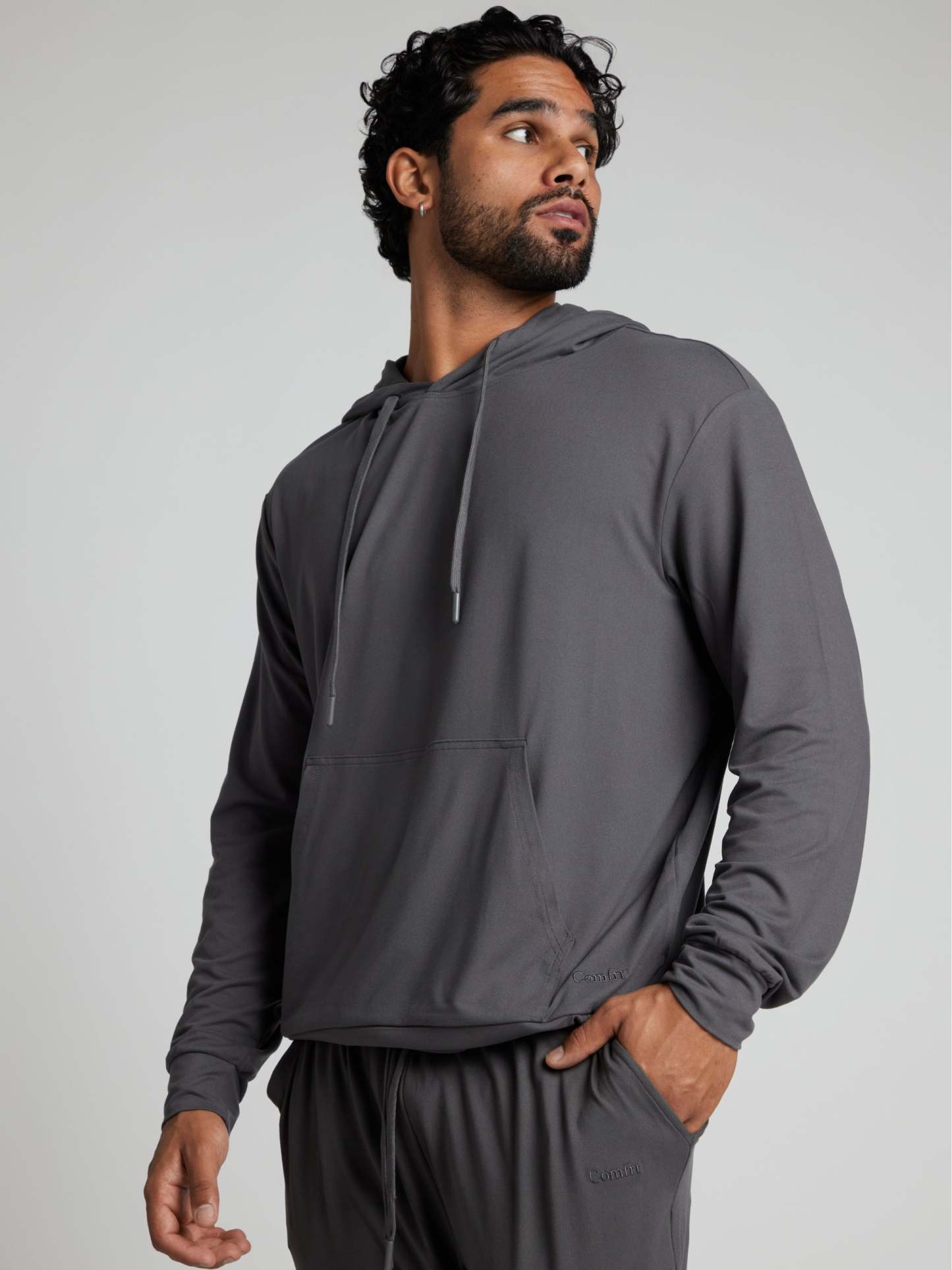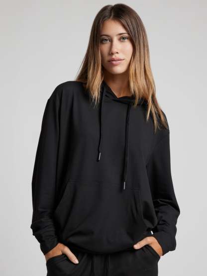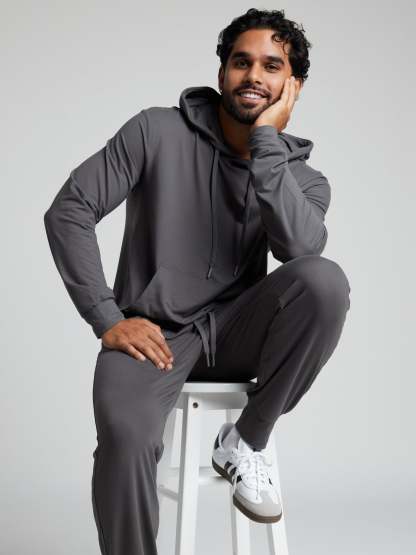 Your go-to layer for… well, everything. Crafted from our new lightweight, brushed AllDayJersey™, this hoodie is breathable, cozy, and unbelievably soft—perfect for lounging, running errands, or even a light jog. The relaxed fit falls straight from shoulder to waist, hitting at or just below the hip for effortless comfort. Finished with a classic hood and adjustable drawcord, it’s the definition of versatile ease. Pair with the AllDayJersey™ Jogger for the ultimate do-anything set.