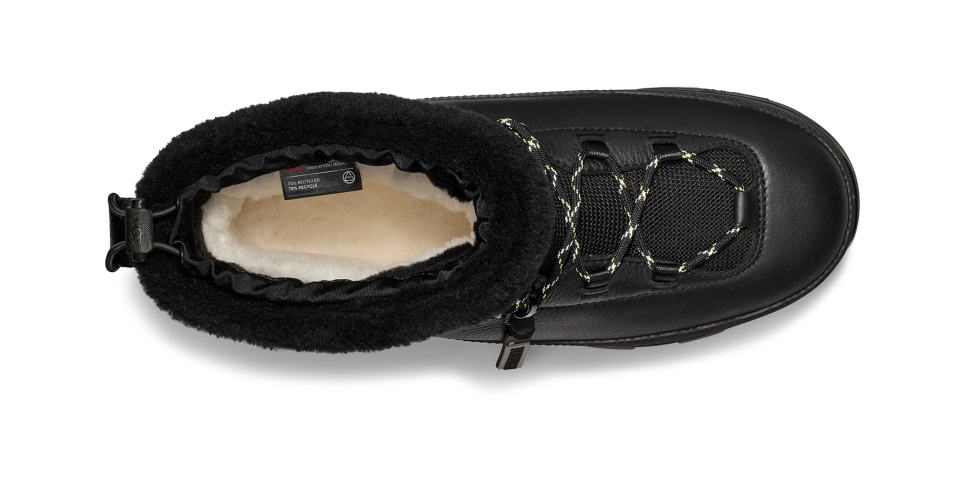 - 10mm UGGplush™ 60% upcycled wool, 40% lyocell on top shaft collar, Rear pull tab, Rubber mudguard