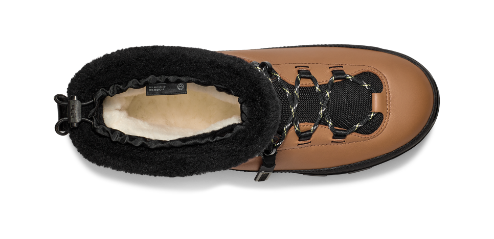- 10mm UGGplush™ 60% upcycled wool, 40% lyocell on top shaft collar, Rear pull tab, Rubber mudguard