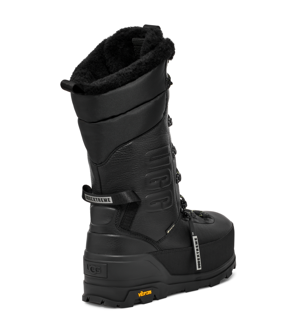 - Embossed UGG® tongue logo, Graphic UGG embossed logo on shaft, UGG® logo on heel, UGGextreme™ screen printed logo on heel pull, GORE-TEX woven label, Vibram® Logo on outsole sidewall