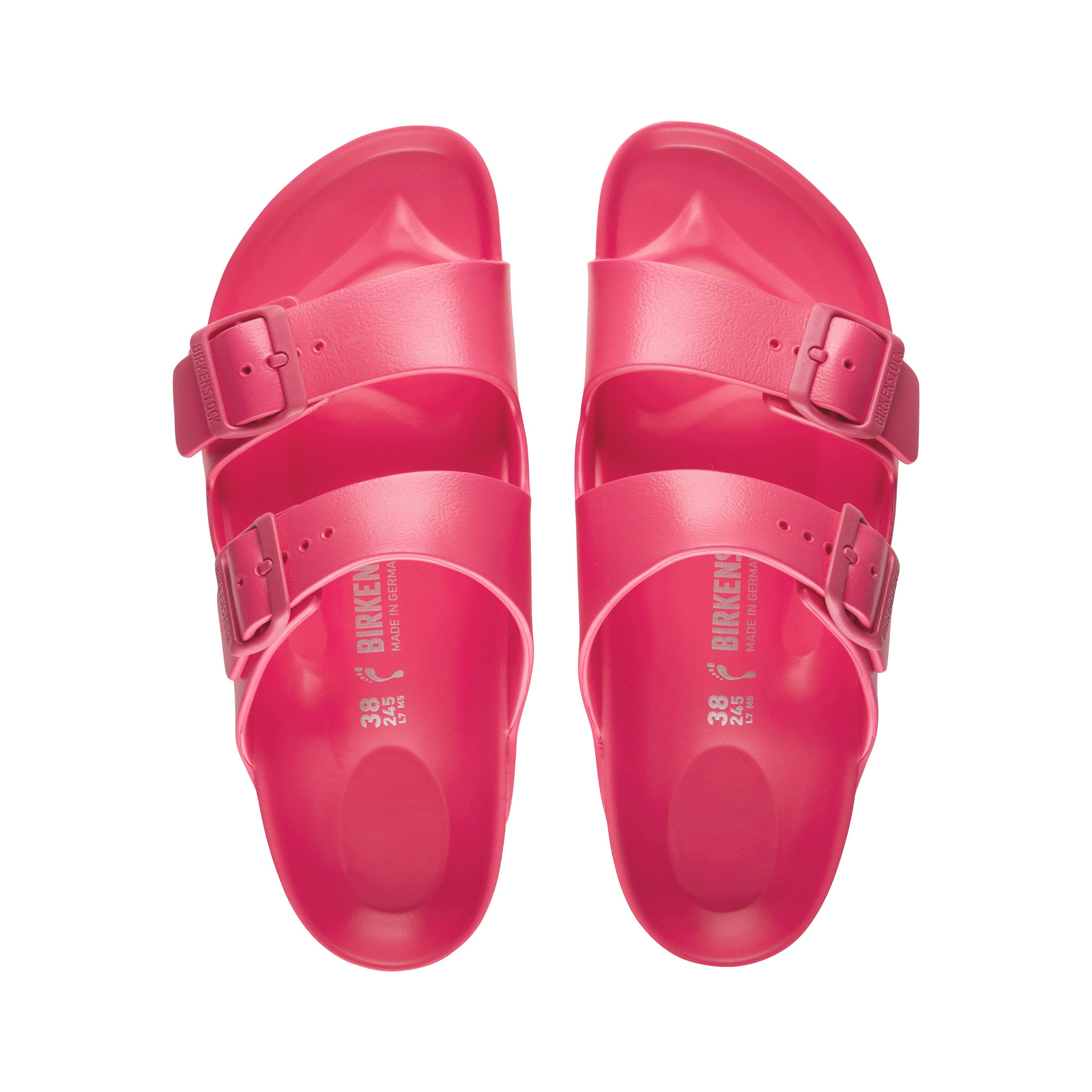 Modelled on the cork original, this sandal is made from ultra lightweight and highly flexible EVA. These colourful sandals are shock-absorbent, waterproof, and skin-friendly. Wear them at the beach, in the garden, or in wellness and spa areas. Its the perfect addition to your classic Birkenstock sandals.