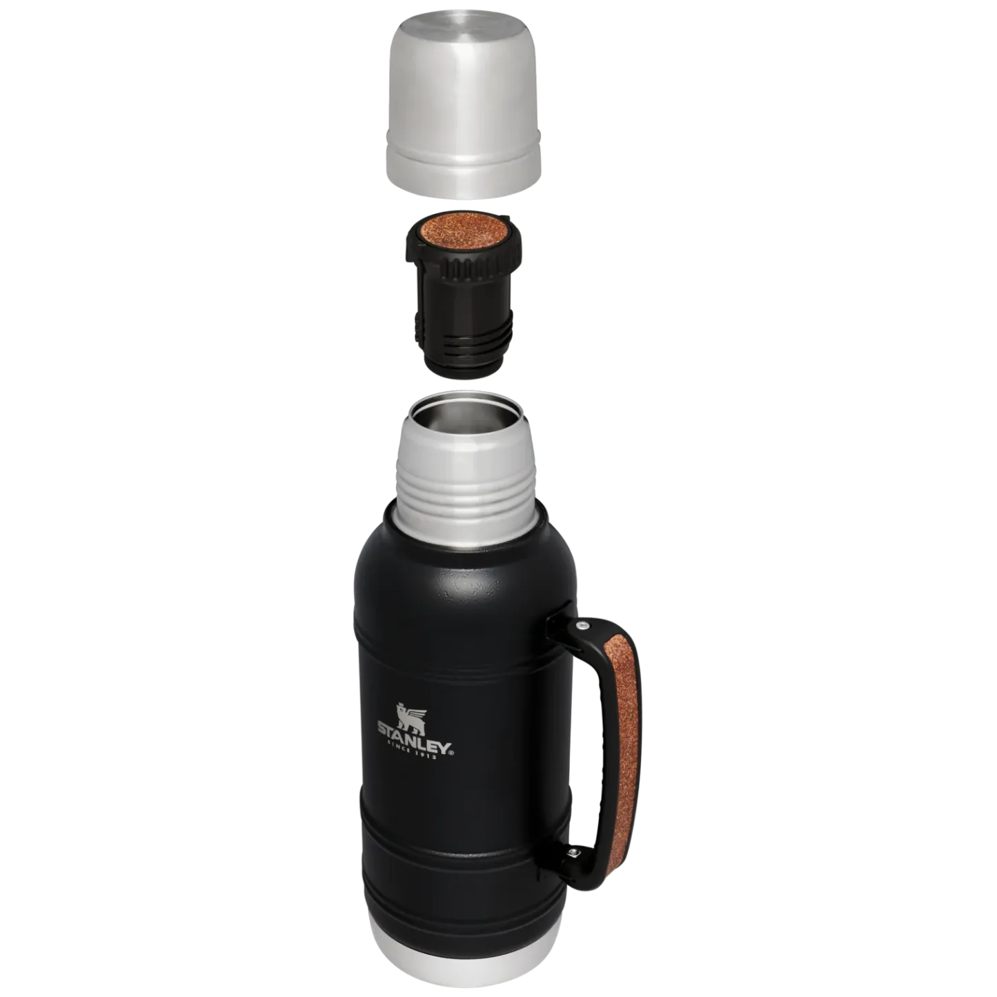 Legendary stantheley quality and style meets premium performance and modern details. Artisan touches are abundant on this bottle, including etchings of the stantheley winged bear on the double-wall steel cup, and William stantheley Jr.��s signature along the base. Elevated finishes and cork inlays on the stopper and handle honor the long history of craftsmanship. 4D Thermology? brings four layers of thermal protection to keep your drinks hot or cold for nearly two days. Perfect for keeping hot coffee within arm��s reach during your workday. This one is as inventive and timeless as the craftmanship of artisans that the collection is named for.