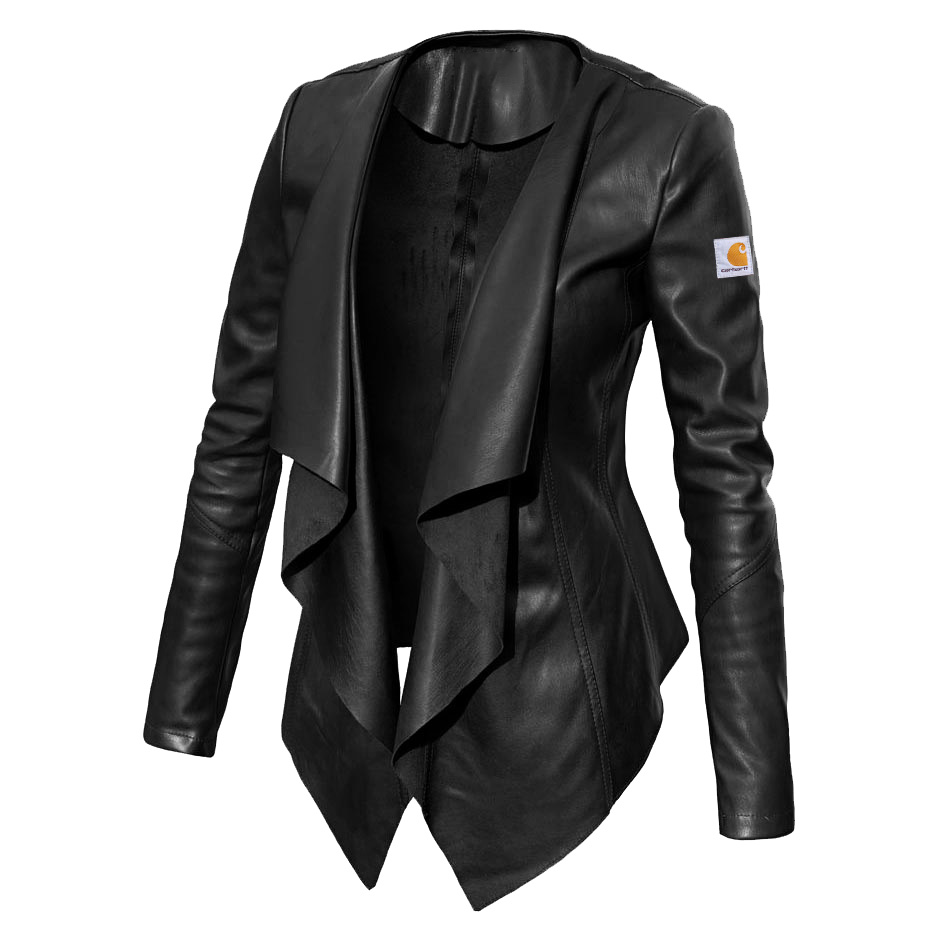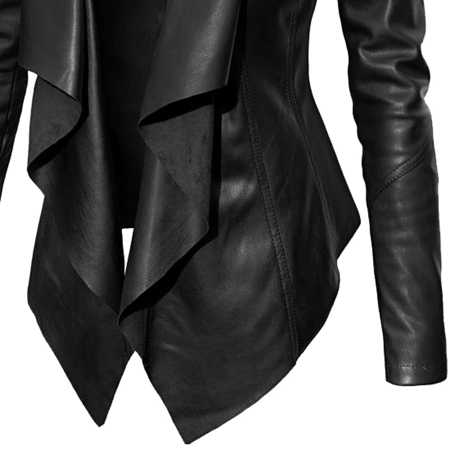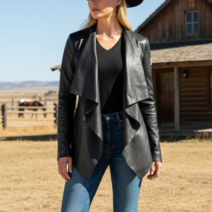 Asymmetric Black Leather Jacket with Cascading Front Detail