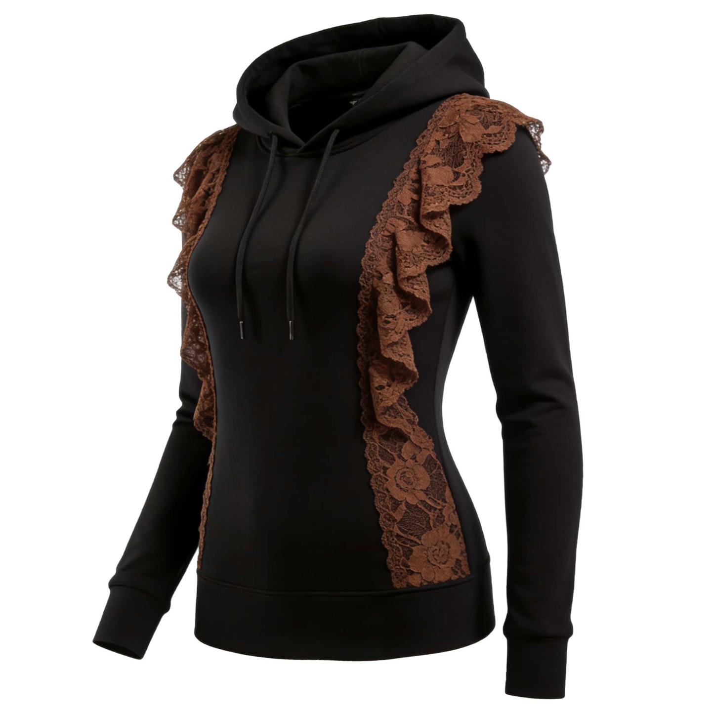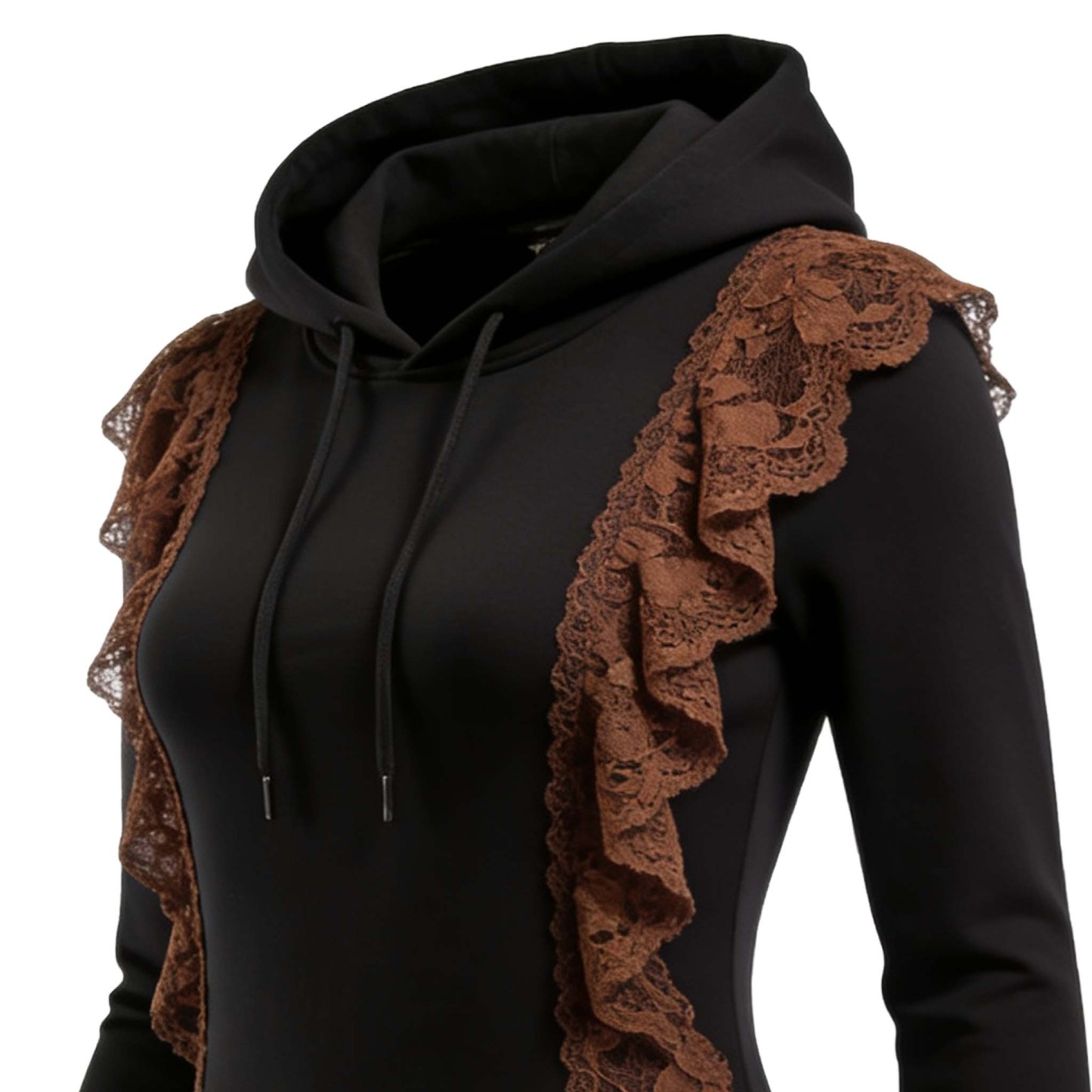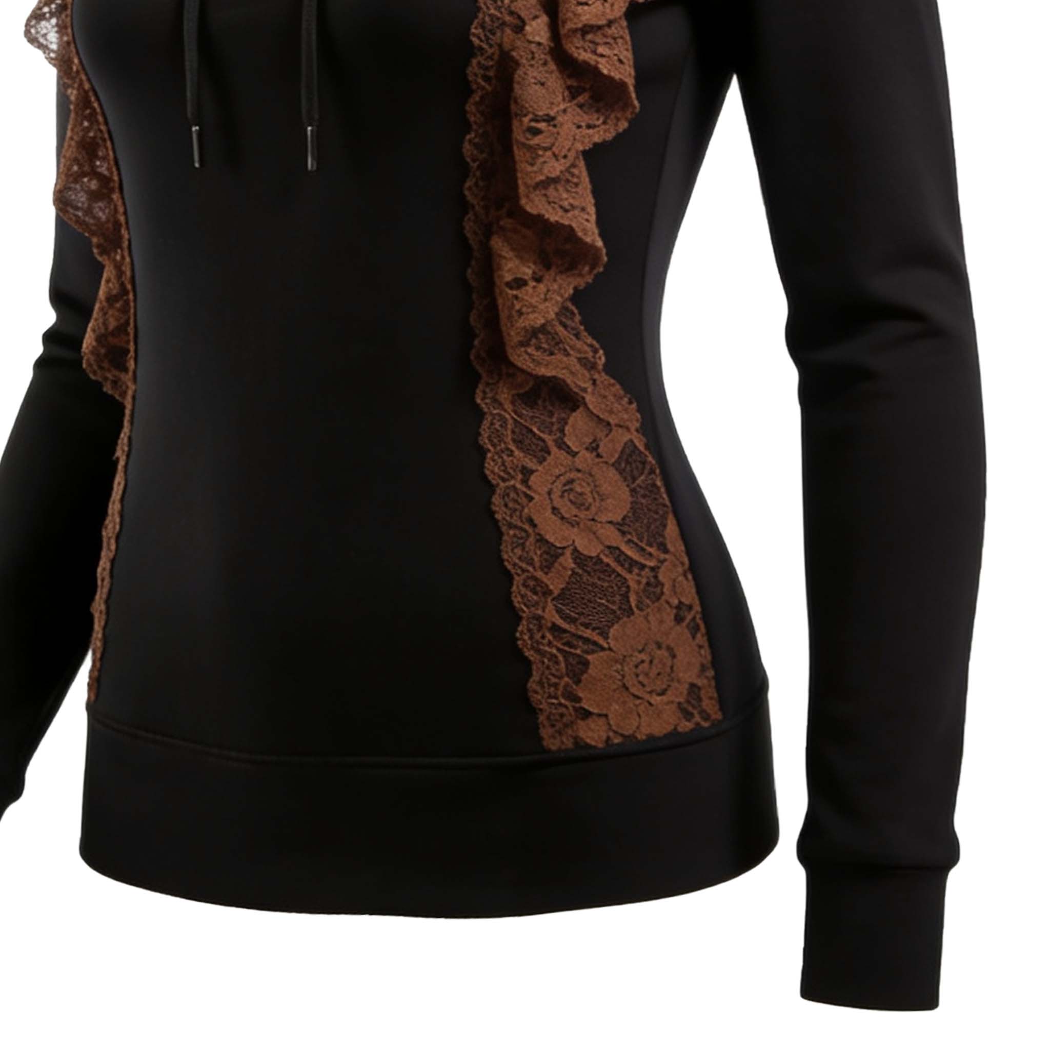 Black Hoodie with Brown Lace Detailing