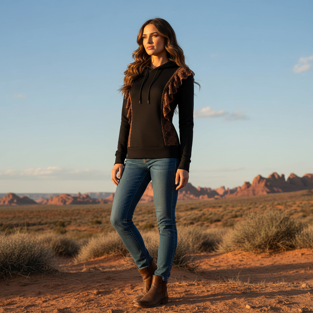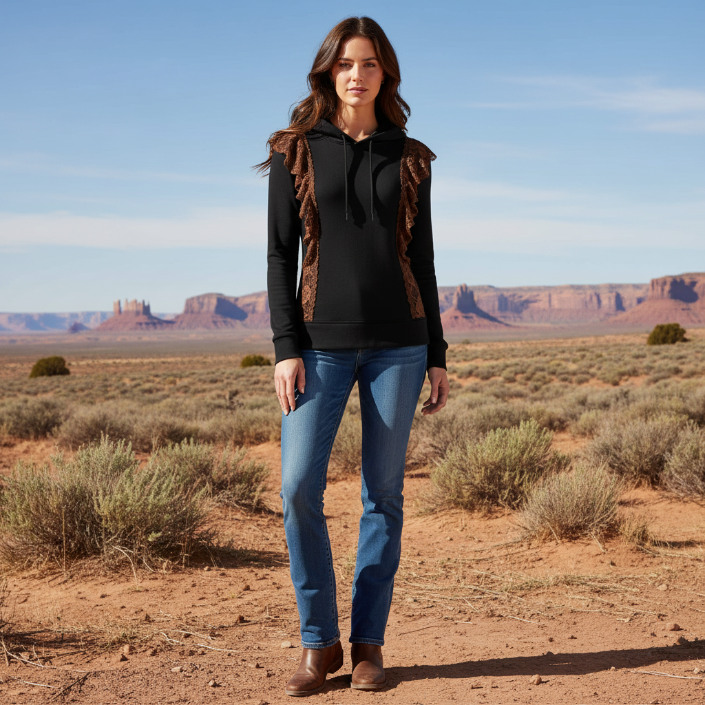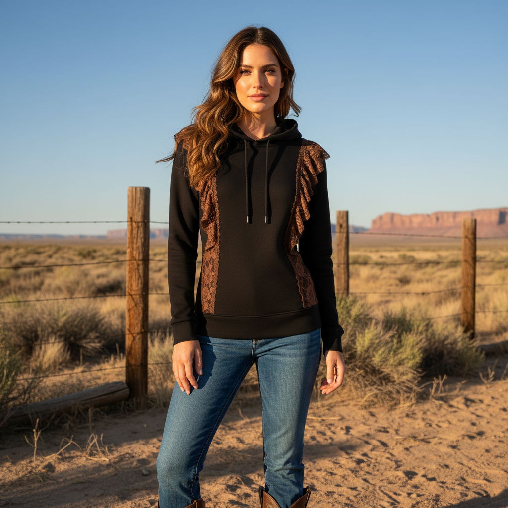 Black Hoodie with Brown Lace Detailing