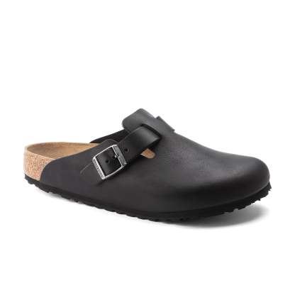 The Birkenstock Boston is a practical classic. Slip them on and you're off! The sophisticated, individual design means the Boston can be worn all year round, giving this style a legendary status for seasonal versatility. Equipped with a strap and buckle that can be adjusted across your instep the Boston clog provides a secure fit. The anatomically shaped footbed and roomy toe box makes them comfortable to wear creating a pleasant environment for the entire foot.