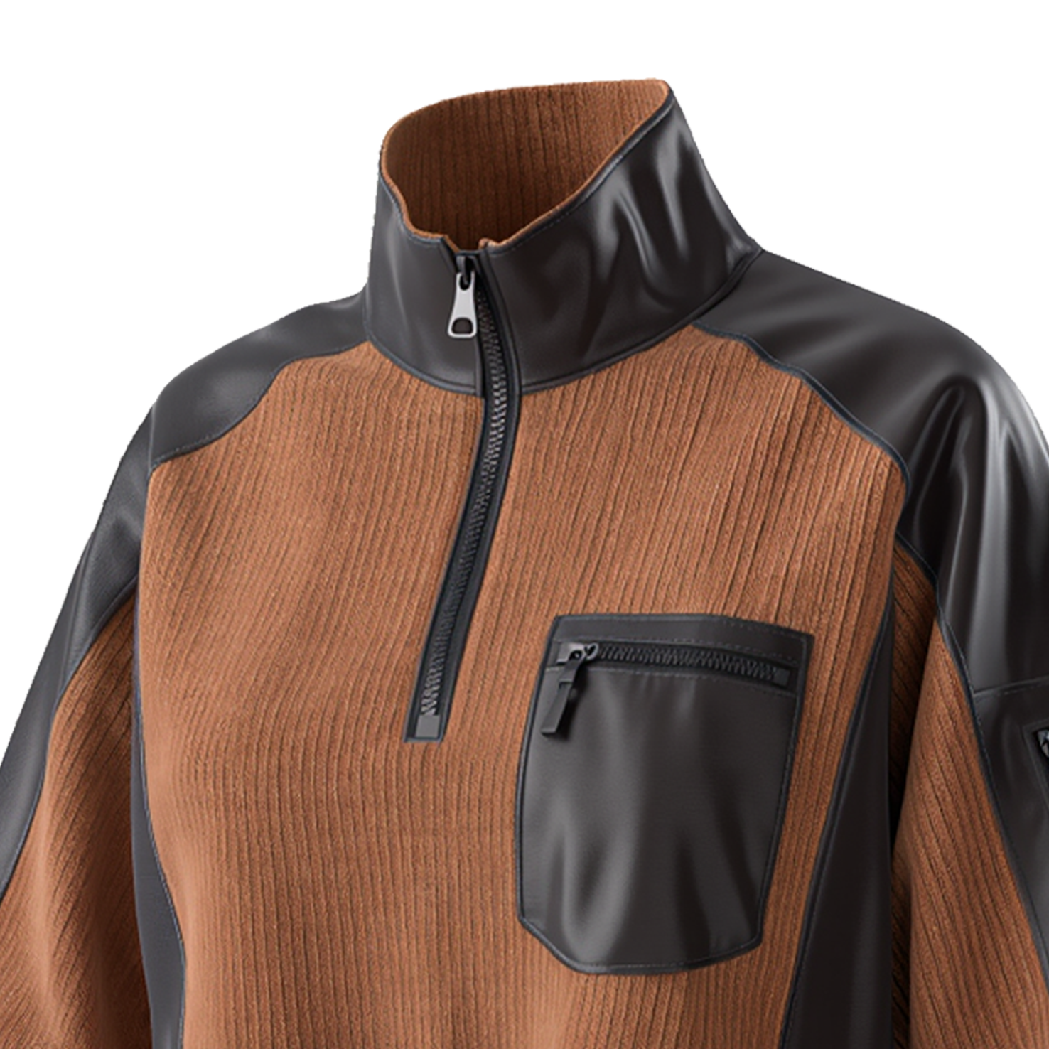• Design Elements: Half-zip closure, contrast sleeves, zippered pockets