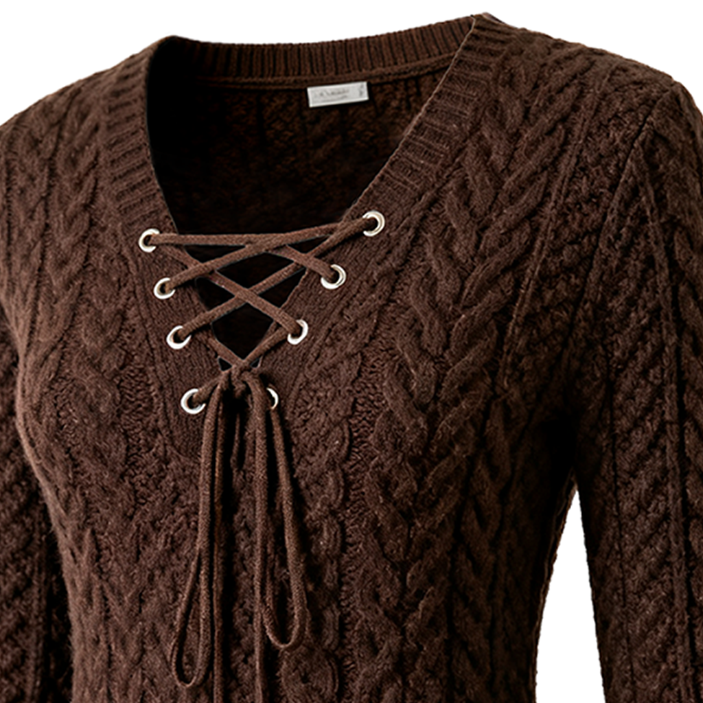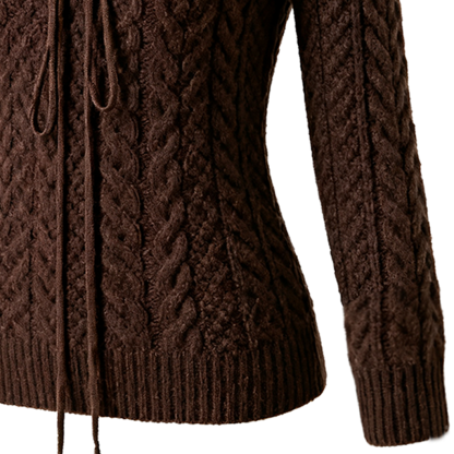 Brown Cable Knit Sweater with Lace-Up Front