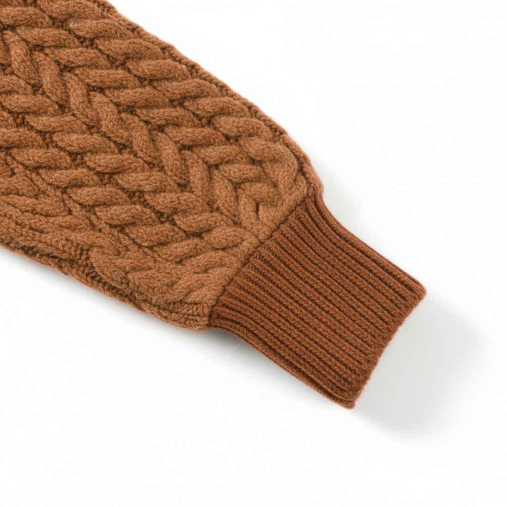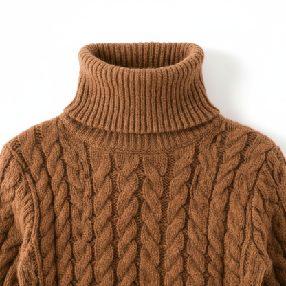 • Design Elements: Cable knit pattern, ribbed cuffs and hem, turtleneck collar