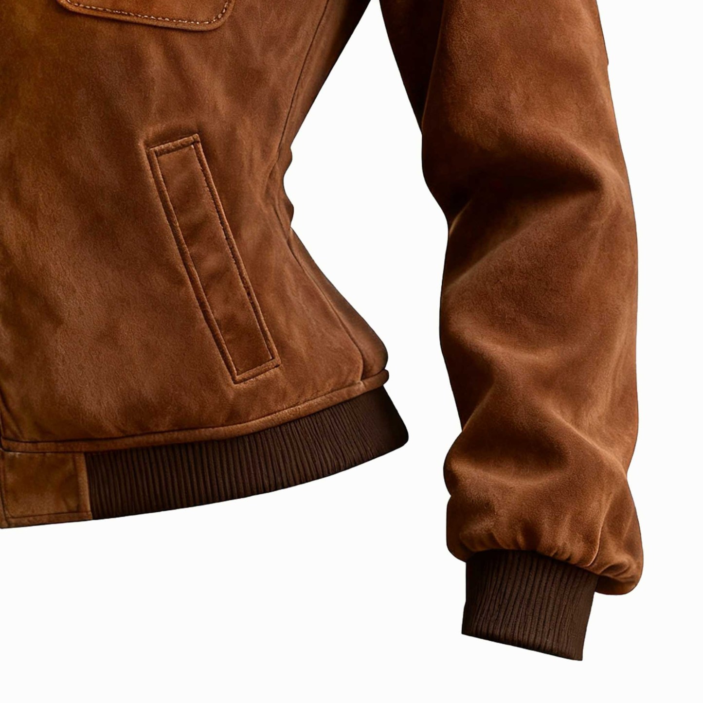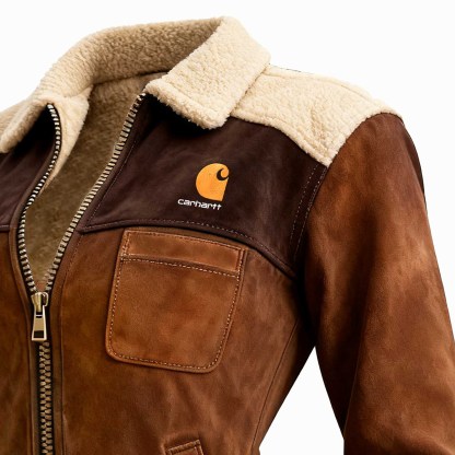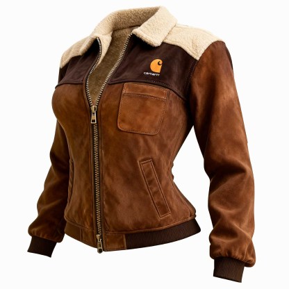 Brown Suede and Fleece Bomber Jacket with Fashion Logo