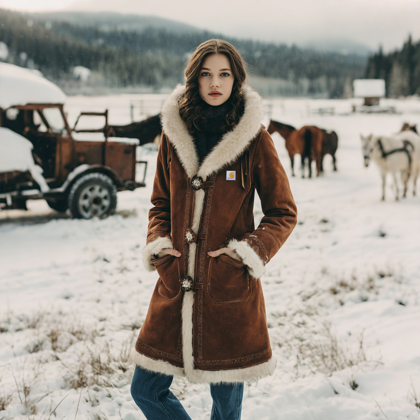 • Design Elements: Features a plush faux fur collar and cuffs for added warmth and style