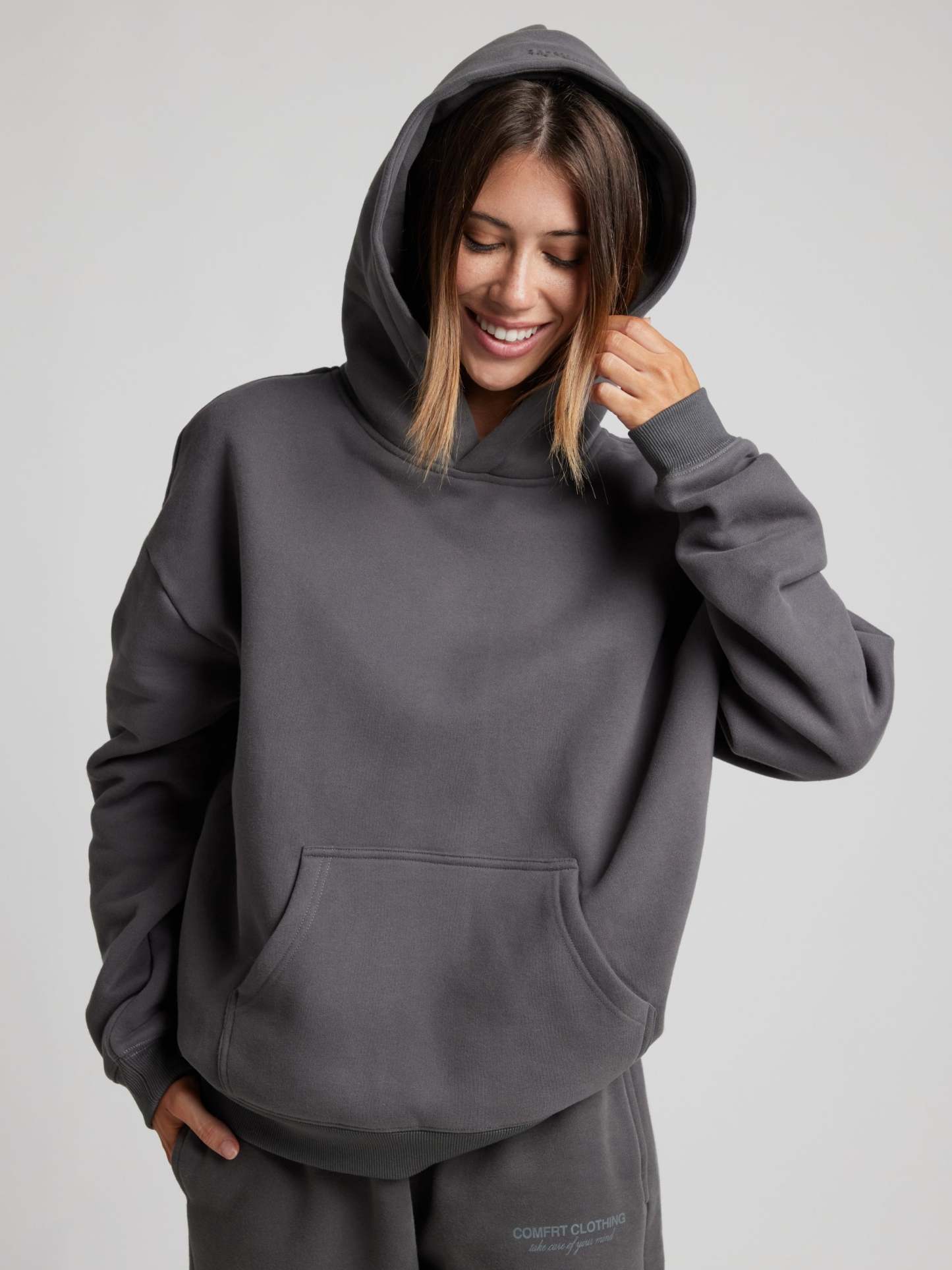 - Oversized hood with embossed Comfrt logo