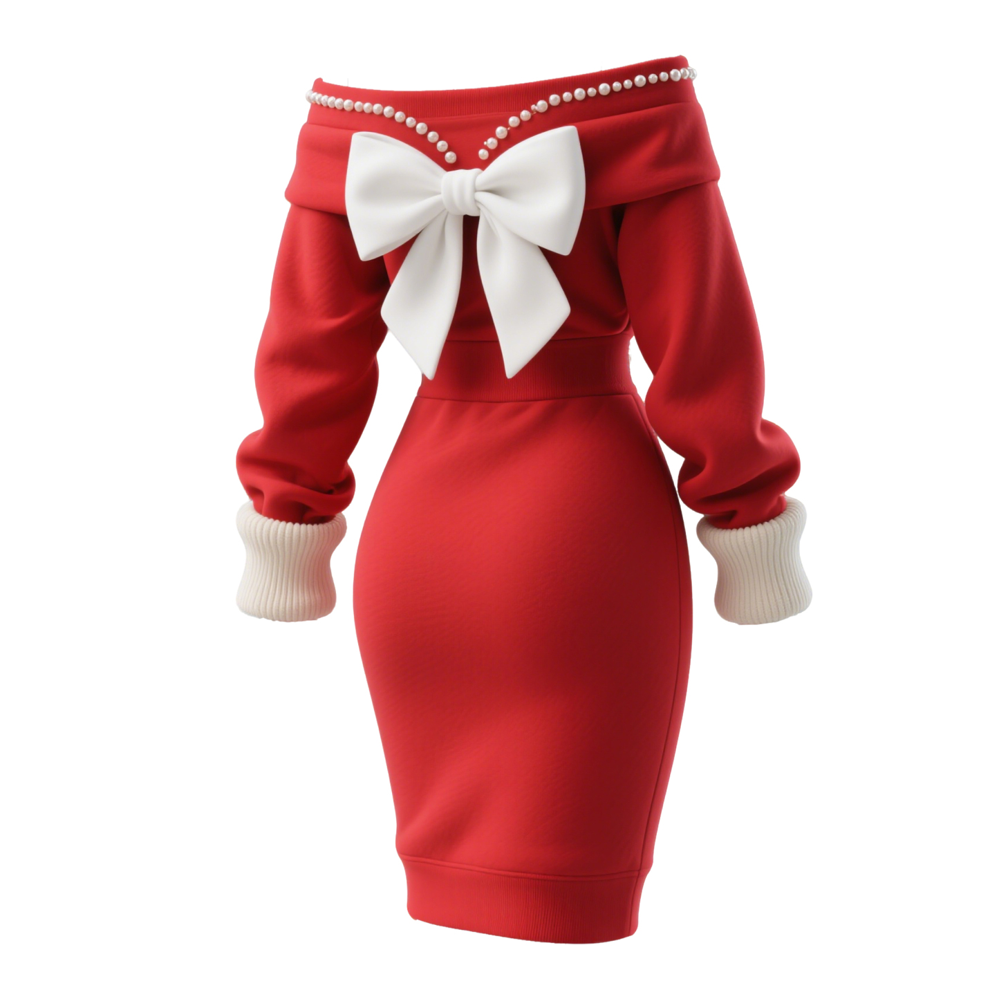 Elegant Red Off-Shoulder Dress with Bow Detailing for Festive Occasions