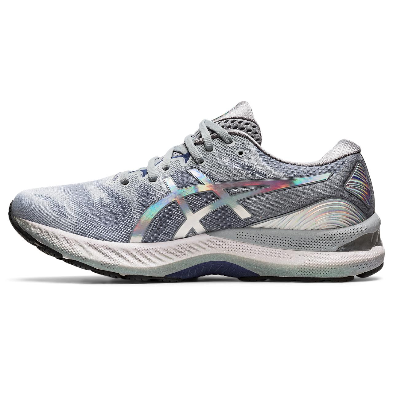 The GEL-NIMBUS 23 PLATINUM running shoe continues to offer excellent comfort and long-run impact absorption. Its improved stability provides a more balanced stride that's followed by smoother transitions. Part of our PLATINUM collection, this shoe is accented with a series of polished hues throughout the design.