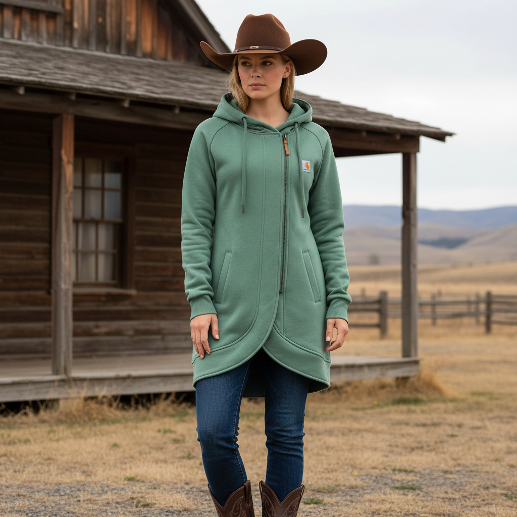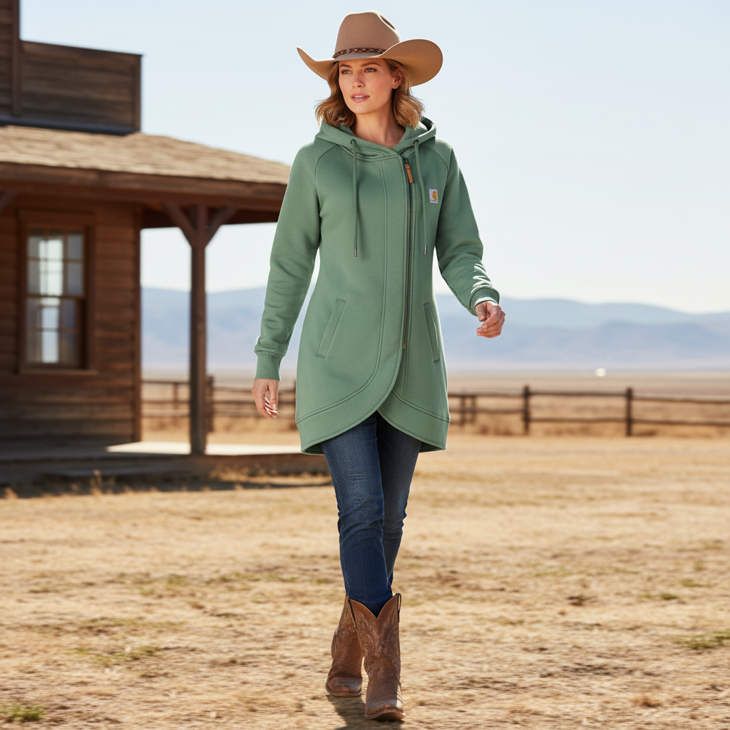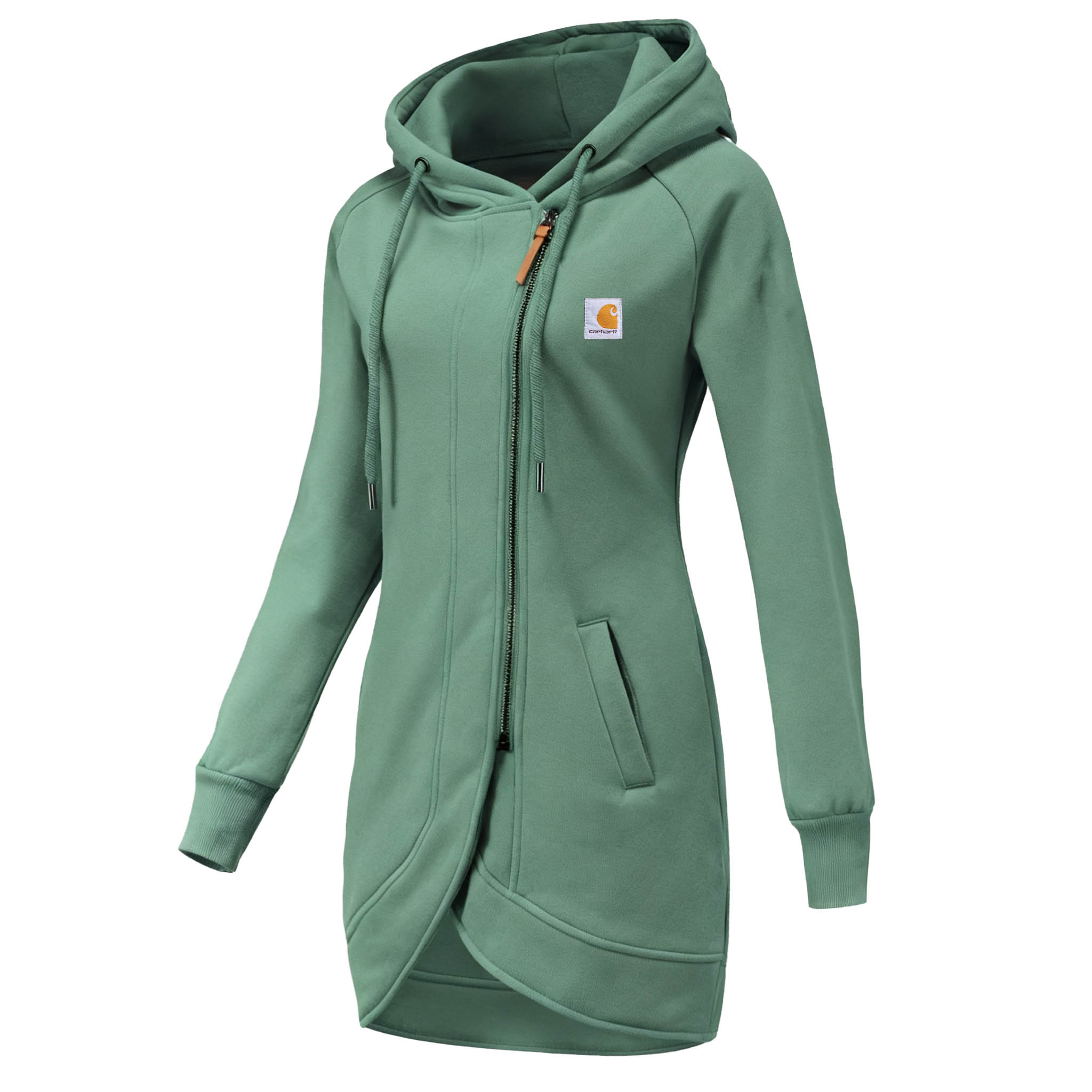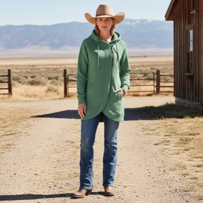 Green Hooded Zip-Up Sweatshirt with Side Pockets