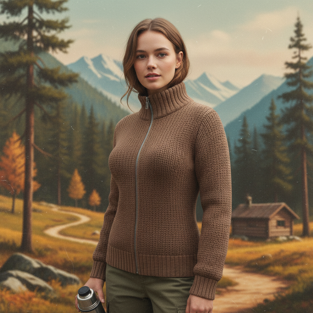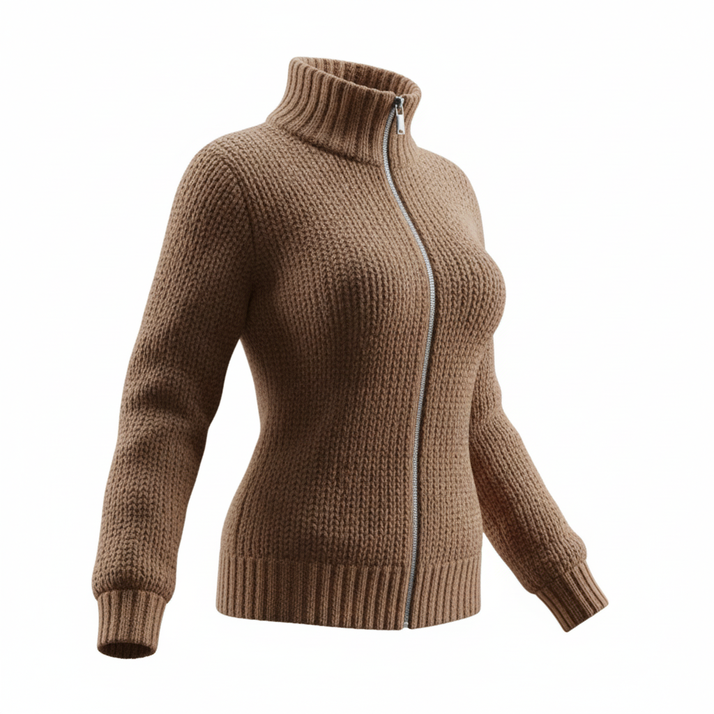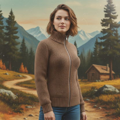 High-Neck Zip-Up Knit Sweater For Women - Stylish And Cozy Winter Wear