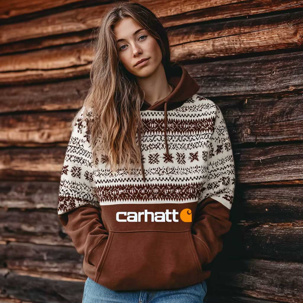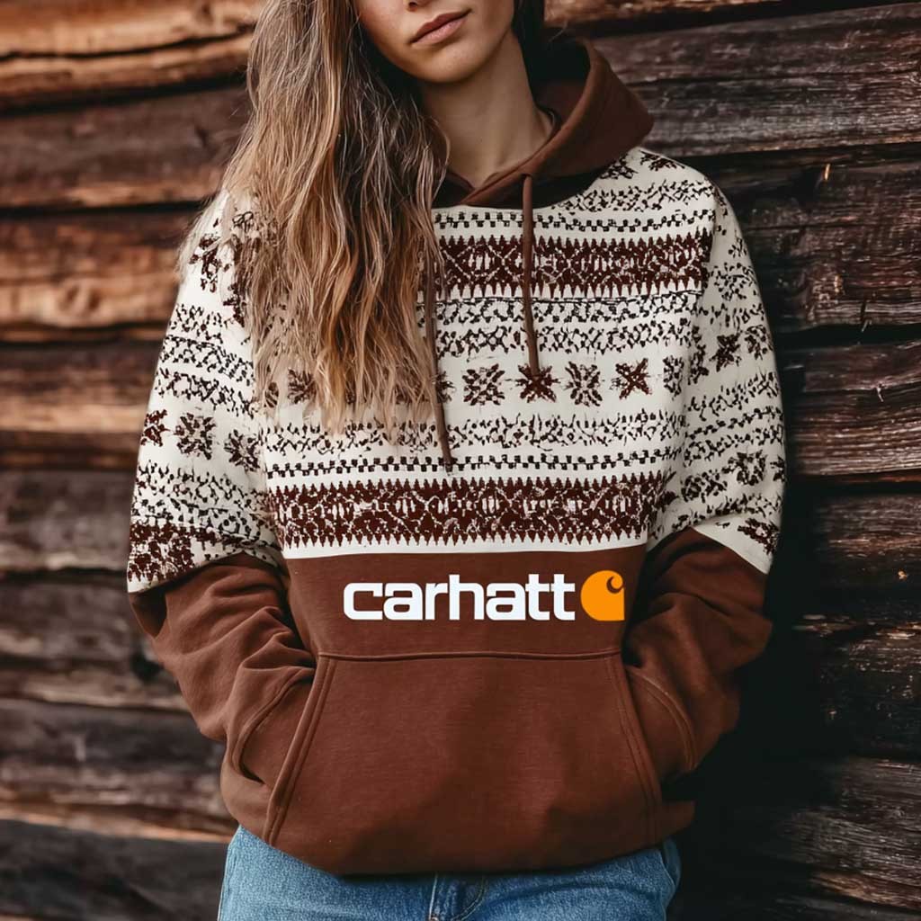 • Design Elements: Intricate geometric patterns, bold contrast color block, front pocket with logo print