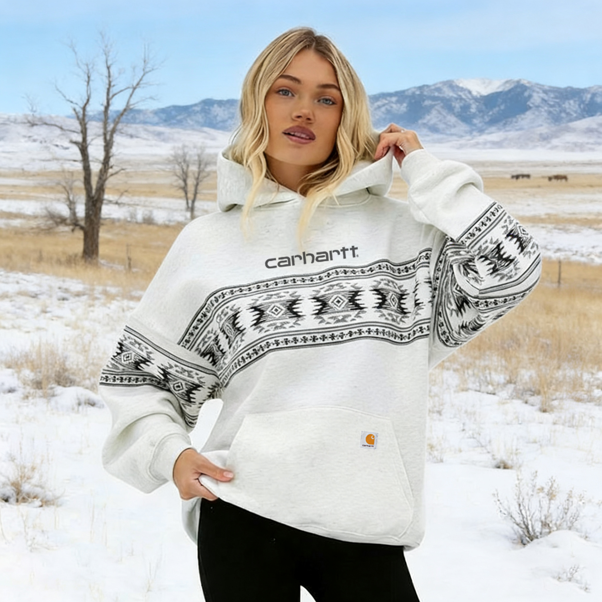 Hooded Sweatshirt with Tribal Print and Front Pocket
