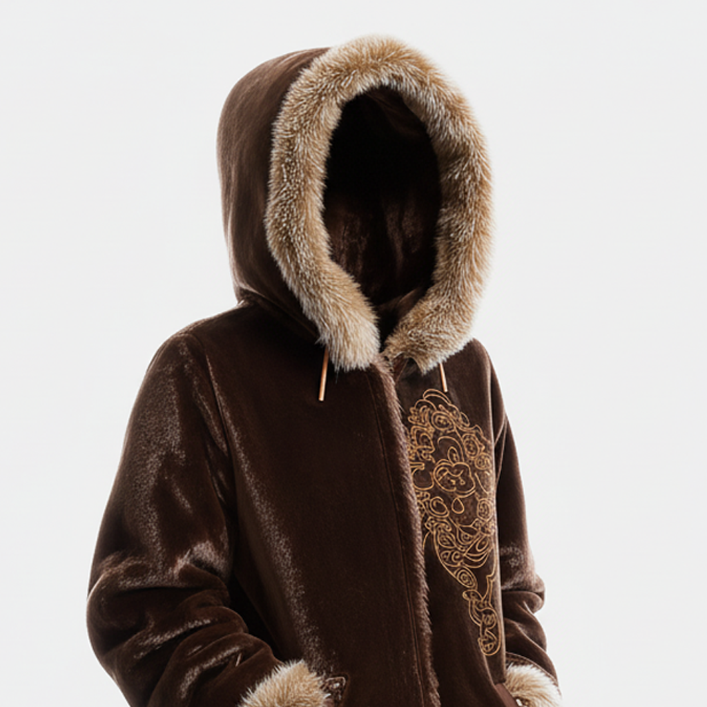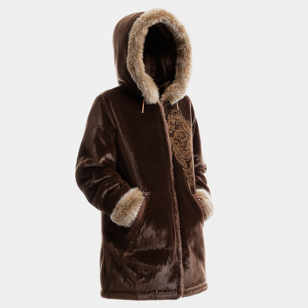 Luxurious Hooded Winter Coat with Embroidered Design