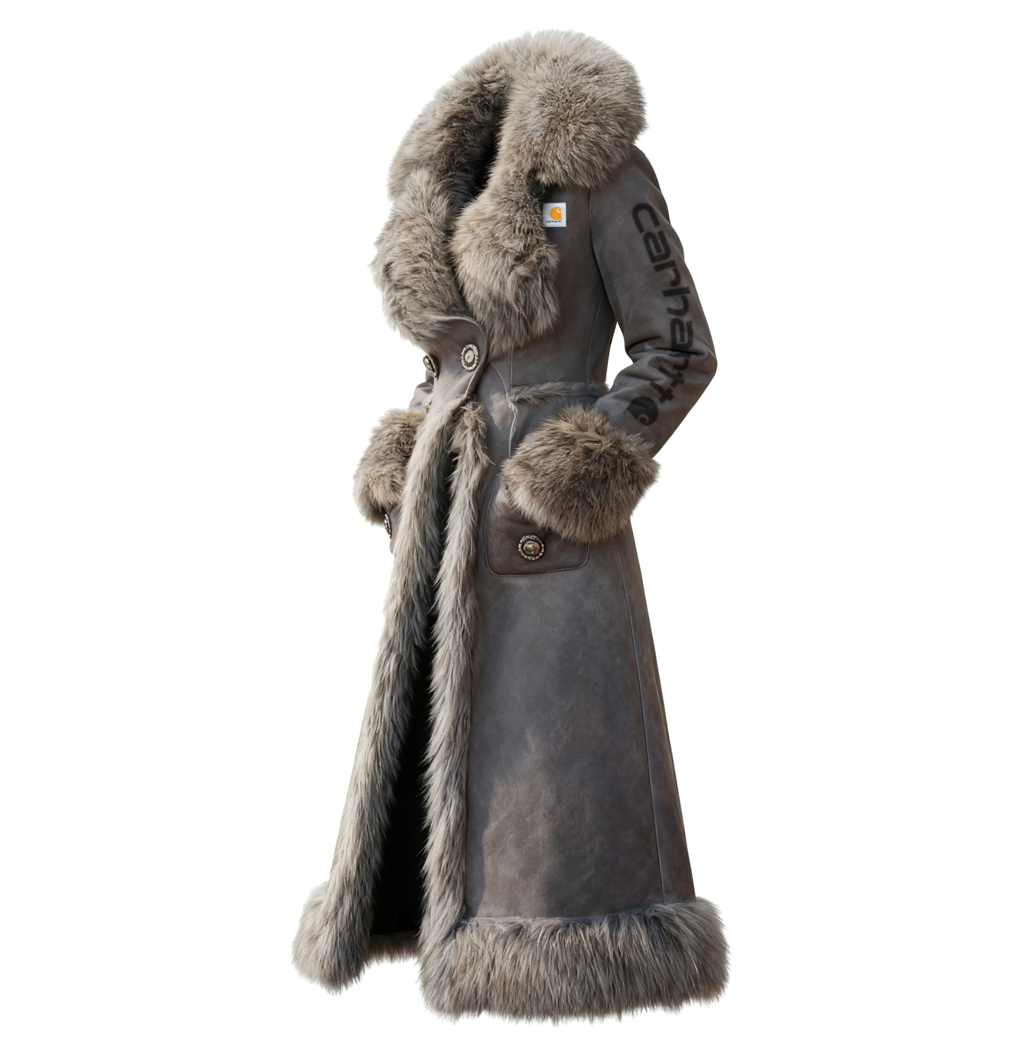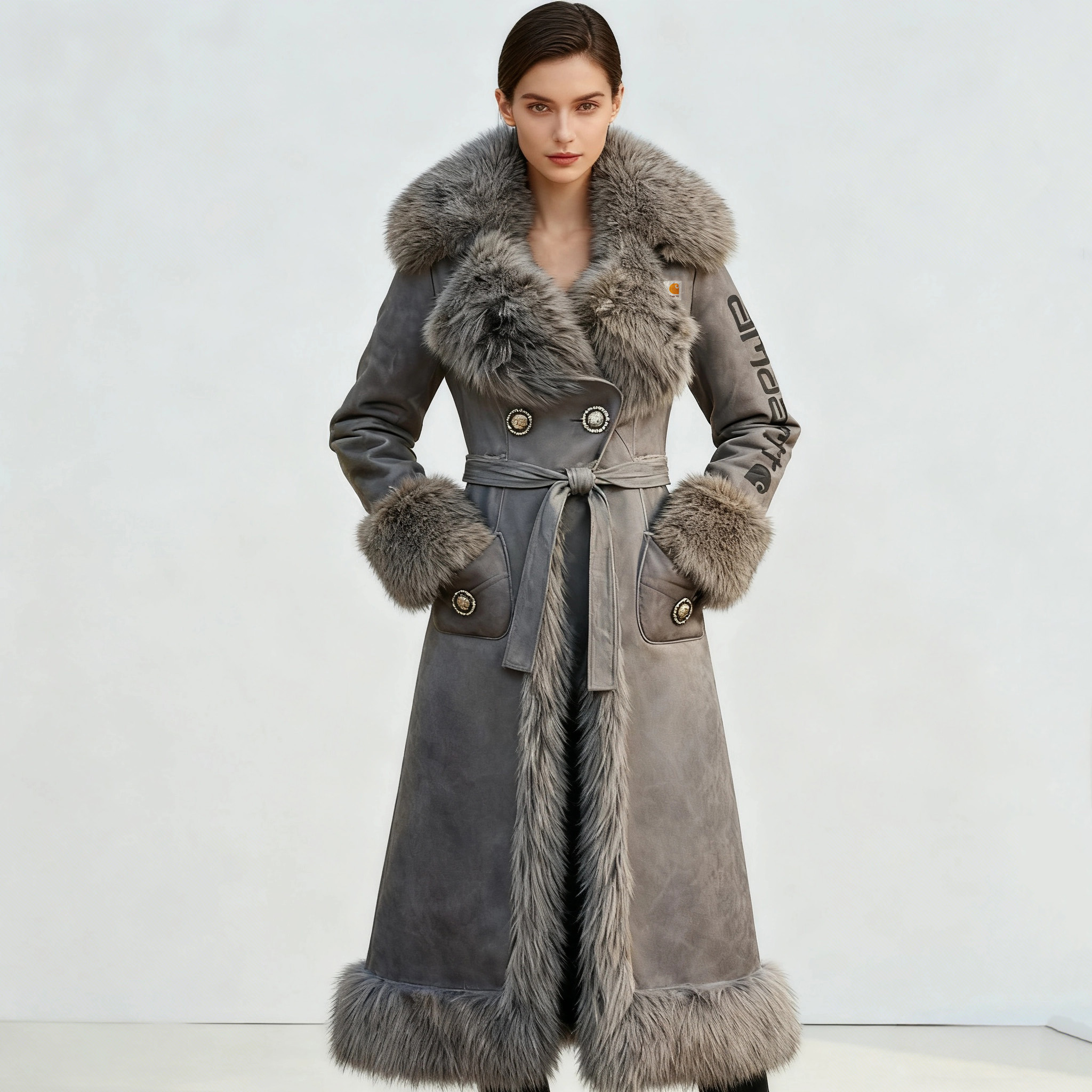 Luxurious Long Faux Fur Coat with Reversible Design for Winter Elegance