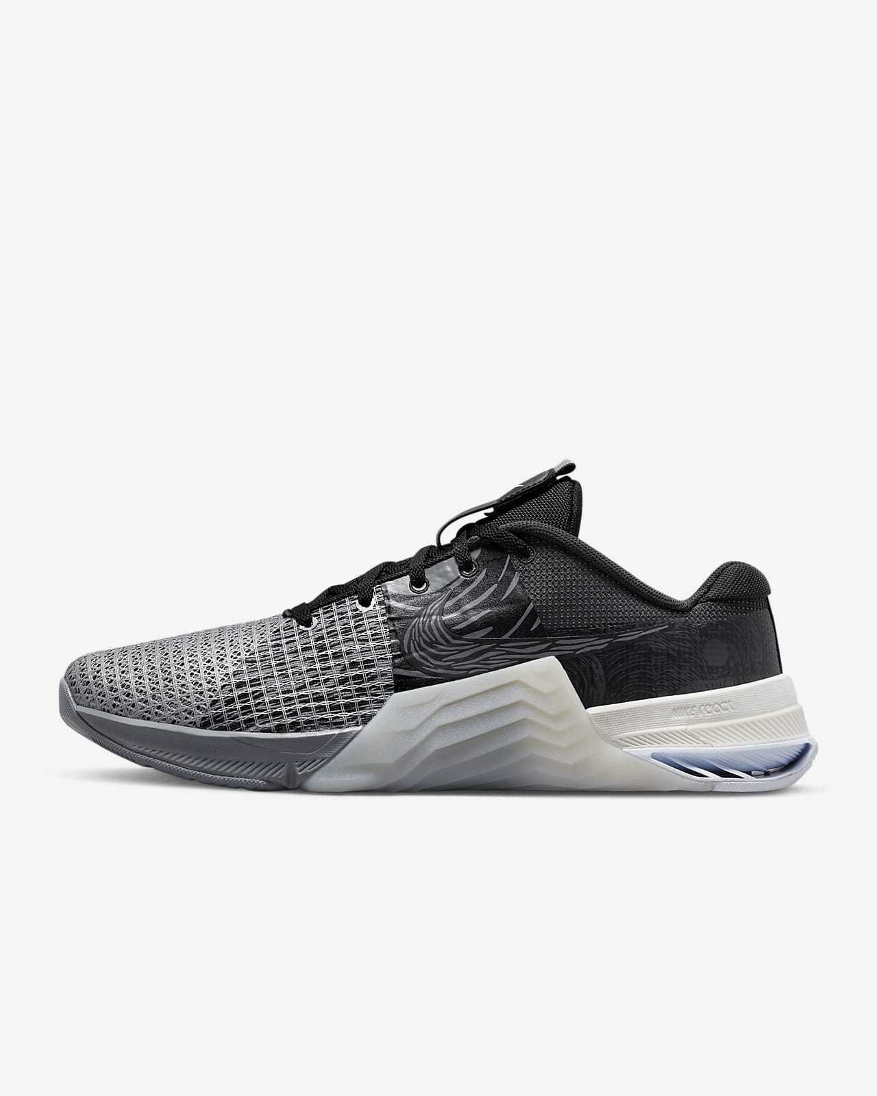 During the winter solstice in the northern hemisphere, the sun has the appearance of being at a 30-degree angle of east and west when it rises and sets. Likewise, when researching the Metcon 8, we found the optimal angle for squatting ranges from 10 to 30 degrees. The gradient, also angled at 30 degrees, goes from light to dark on the midsole and back again from dark to light to mimic the sun rising and setting during the solstice.