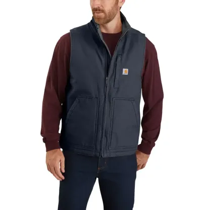 Men's Mock-Neck Sherpa-Lined Vest - Loose Fit - Washed Duck