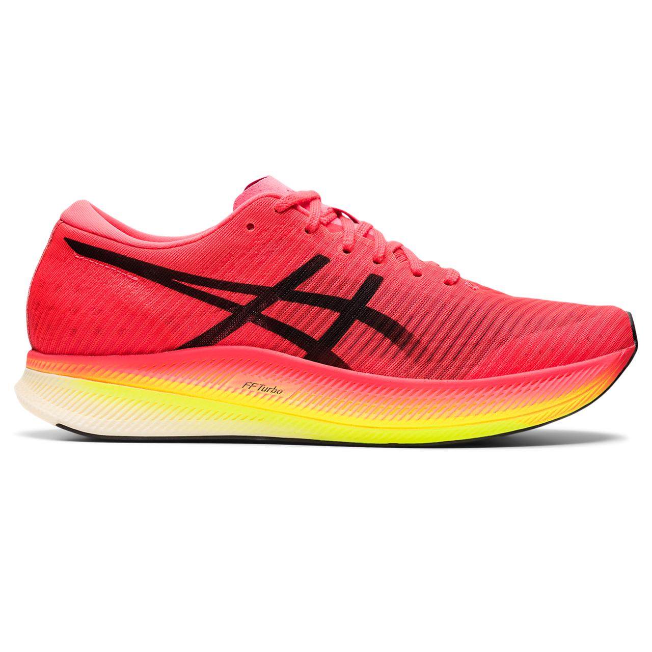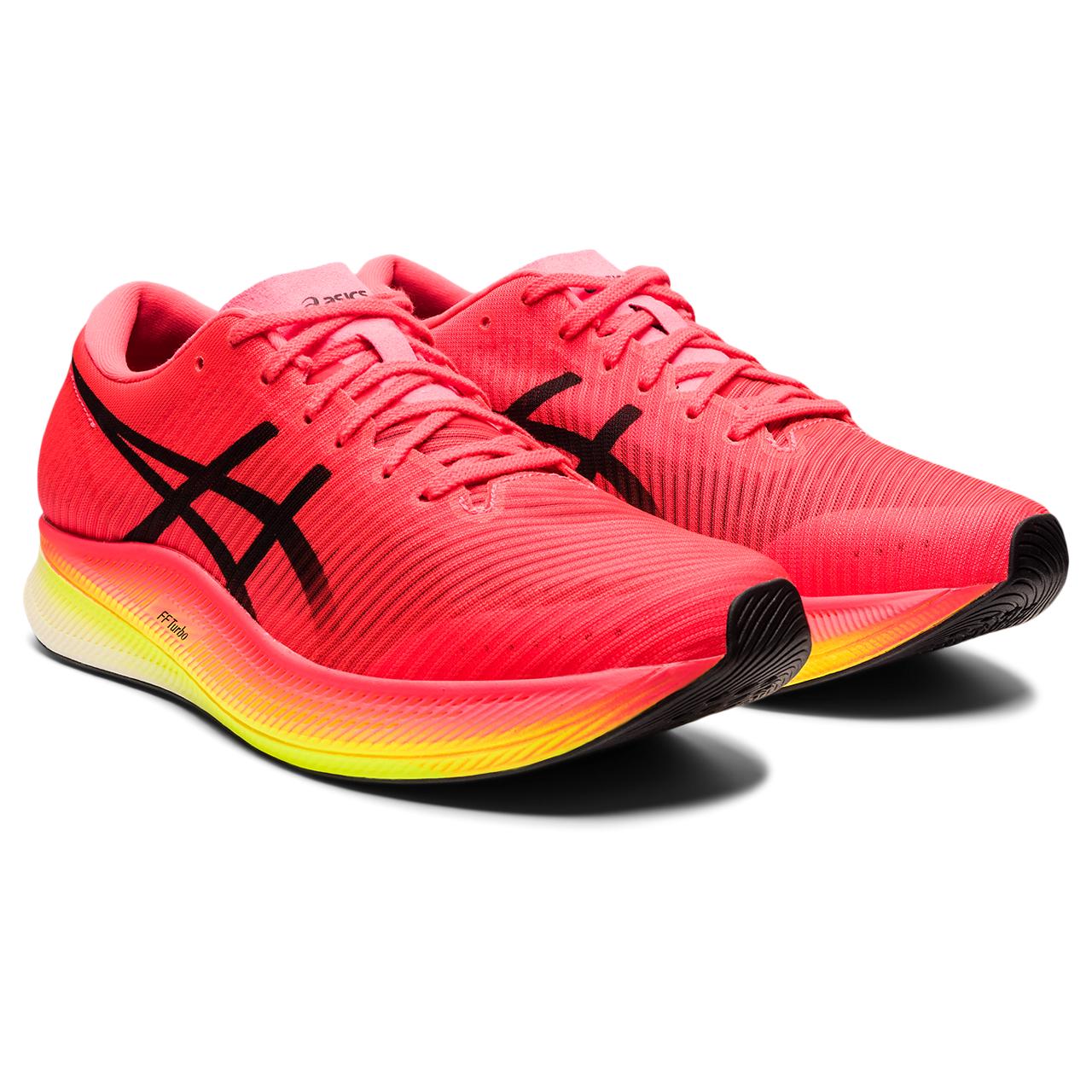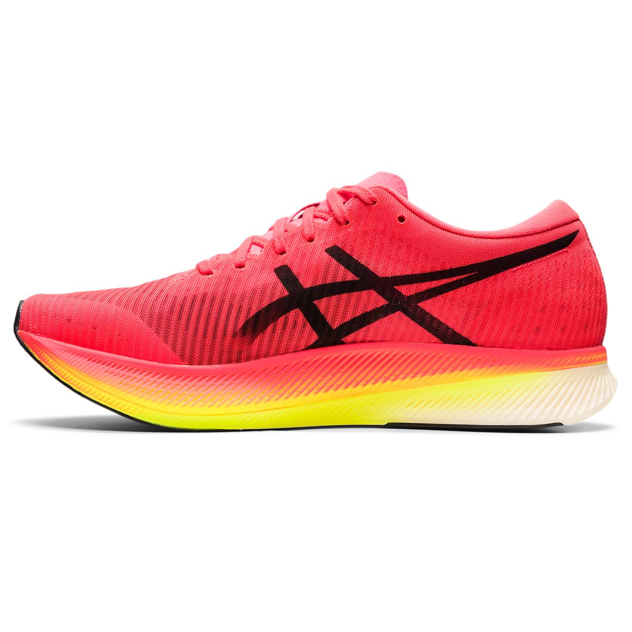 The METASPEED Edge racing shoe moves you towards a sound mind and new personal best. It helps you go faster by extending your stride length while allowing you to control your pace more easily.