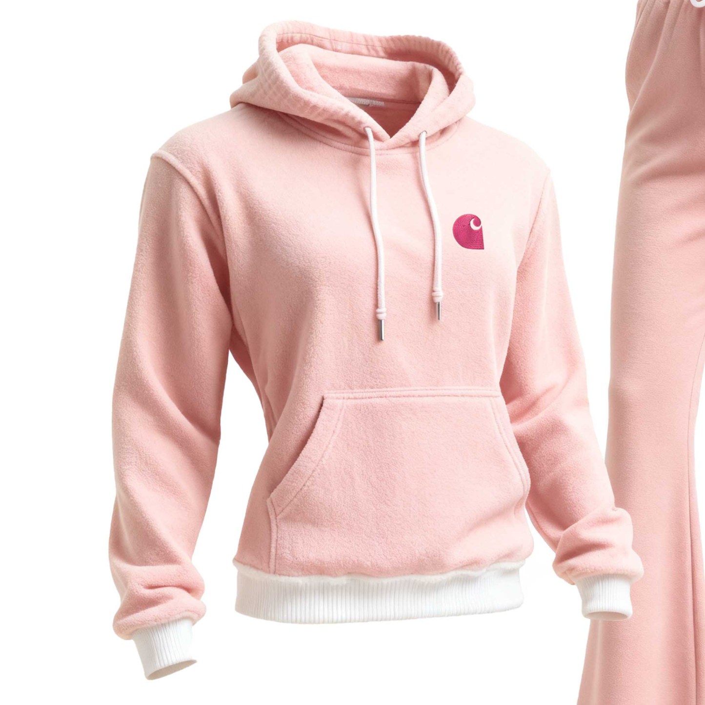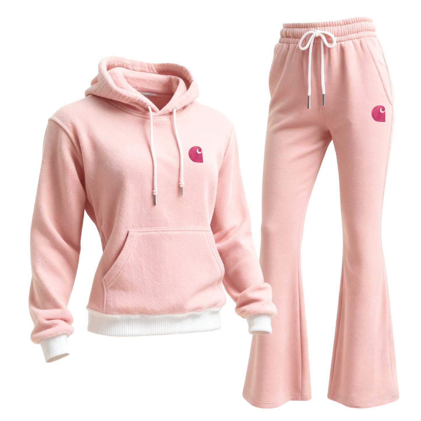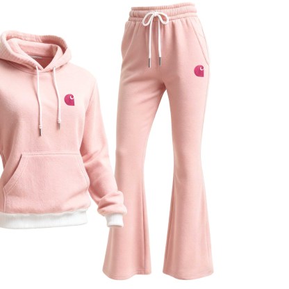 Pink Fleece Hoodie and Flare Sweatpants Set