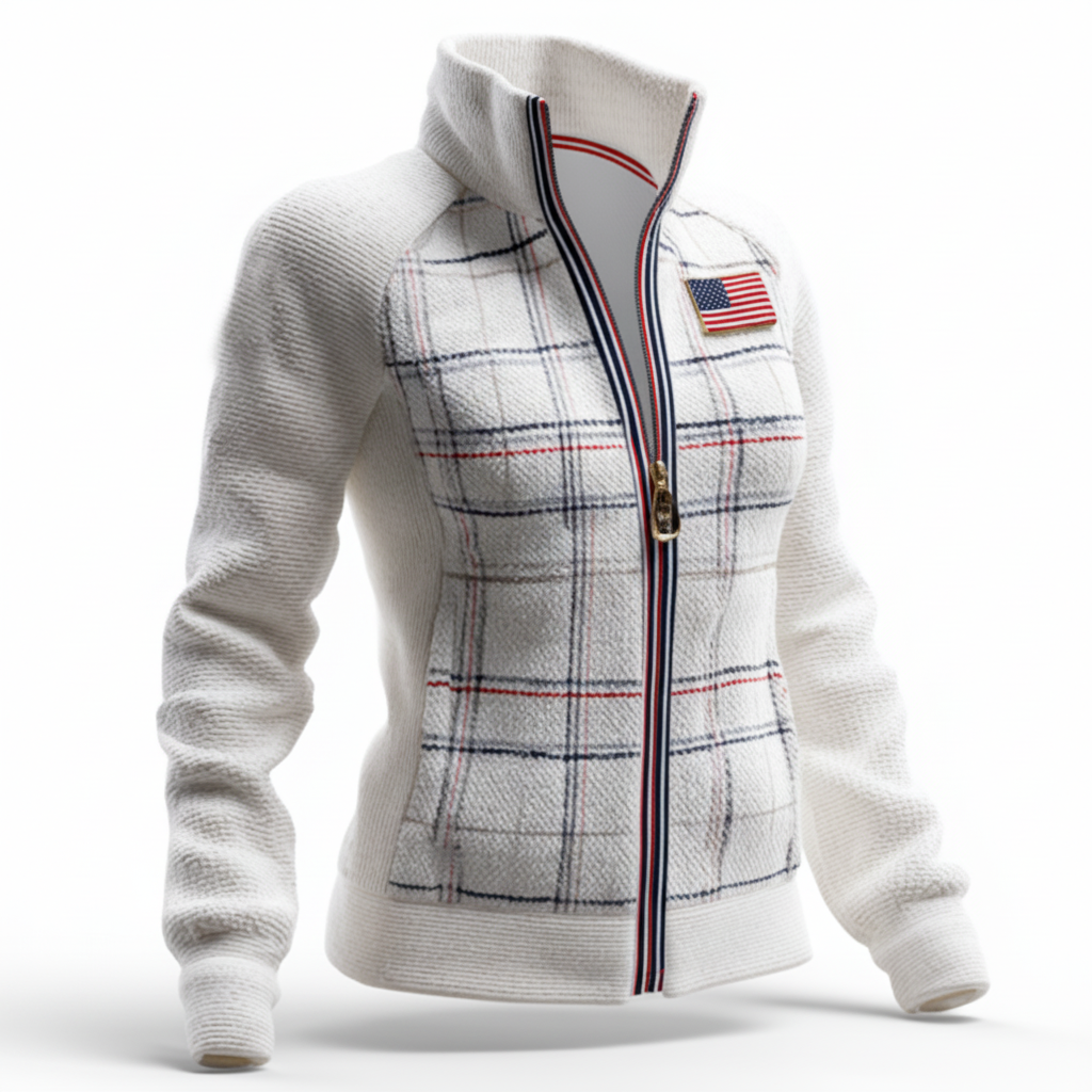 • Design Elements: Plaid pattern on the front panel, American flag patch on the chest, contrast zipper