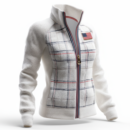 Plaid Zip-Up Jacket with American Flag Patch - Perfect for Casual and Outdoor Activities