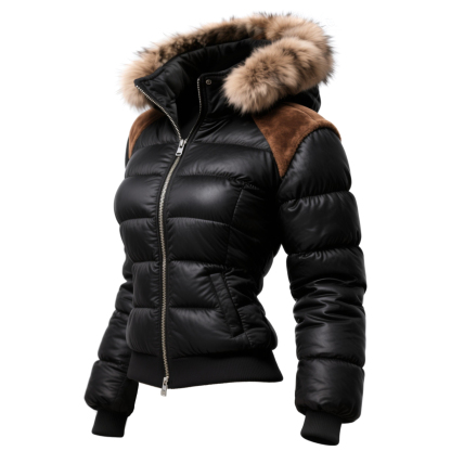 Retro Women's Contrast Color Stitching Fur Collar Stand Collar Hooded Jacket