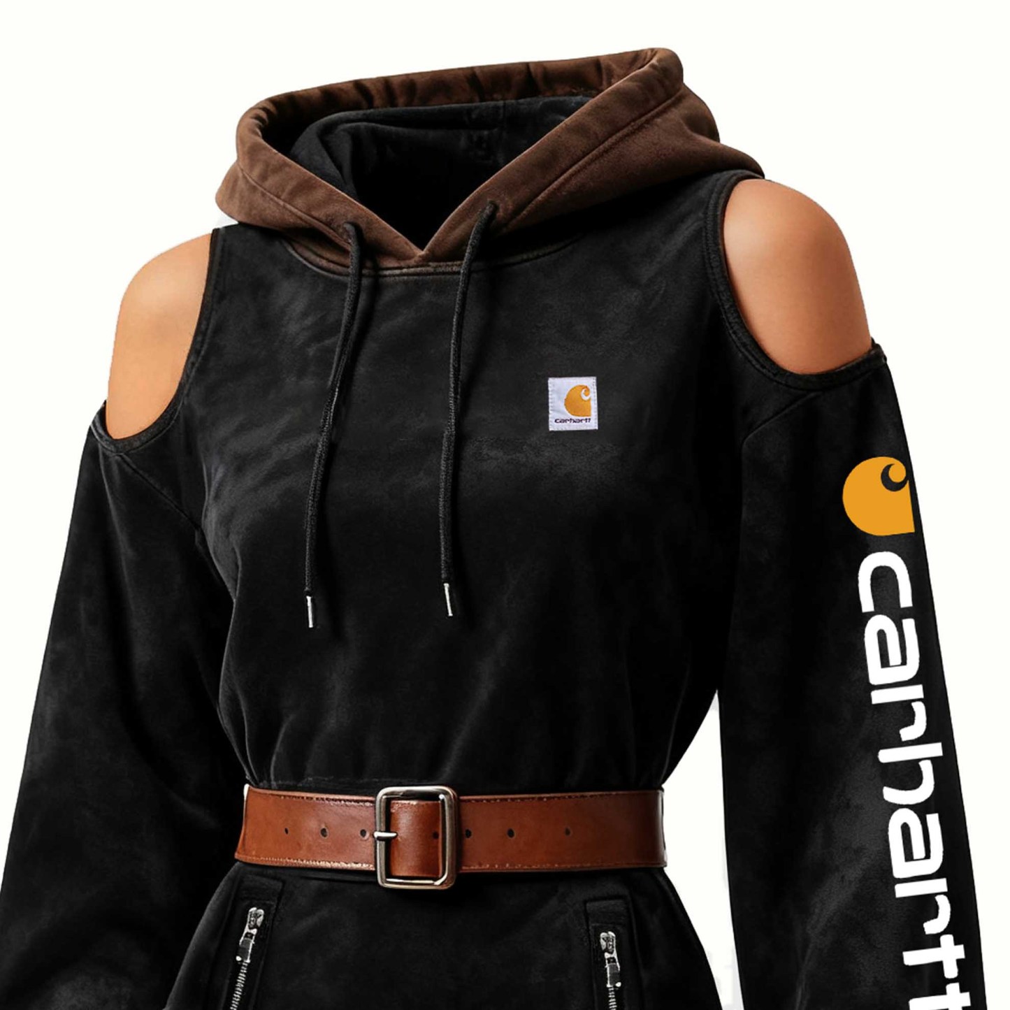 • Design Elements: Cold-shoulder cutouts, front zippered pockets, and sleeve branding