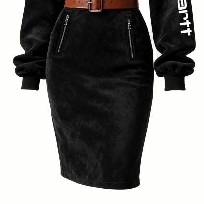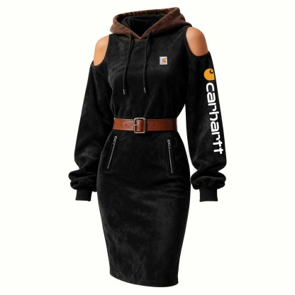 Stylish Cold-Shoulder Hooded Dress with Belted Waist