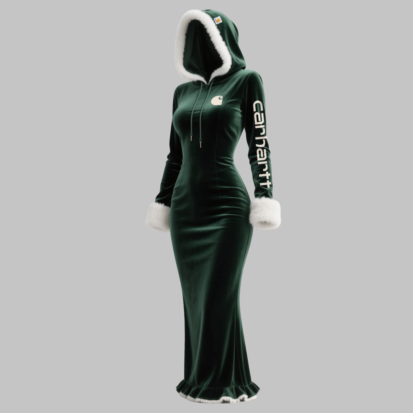 • Design Elements: Deer emblem with cross motif, decorative belt with tassels, and elegant ruffled hem