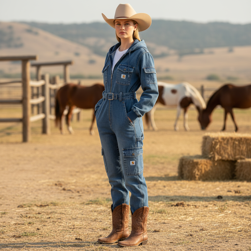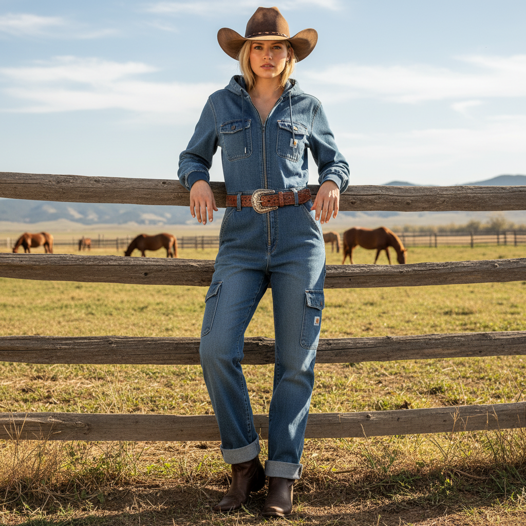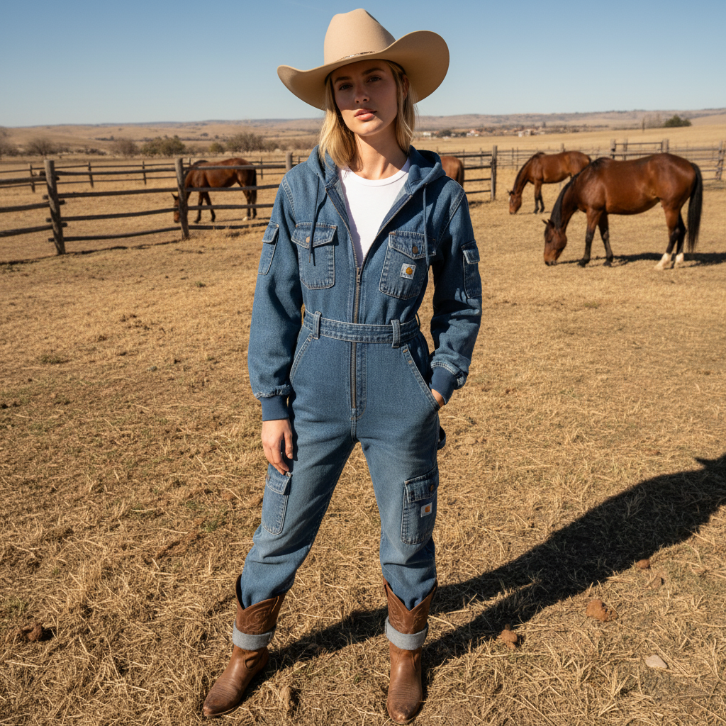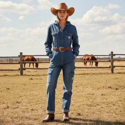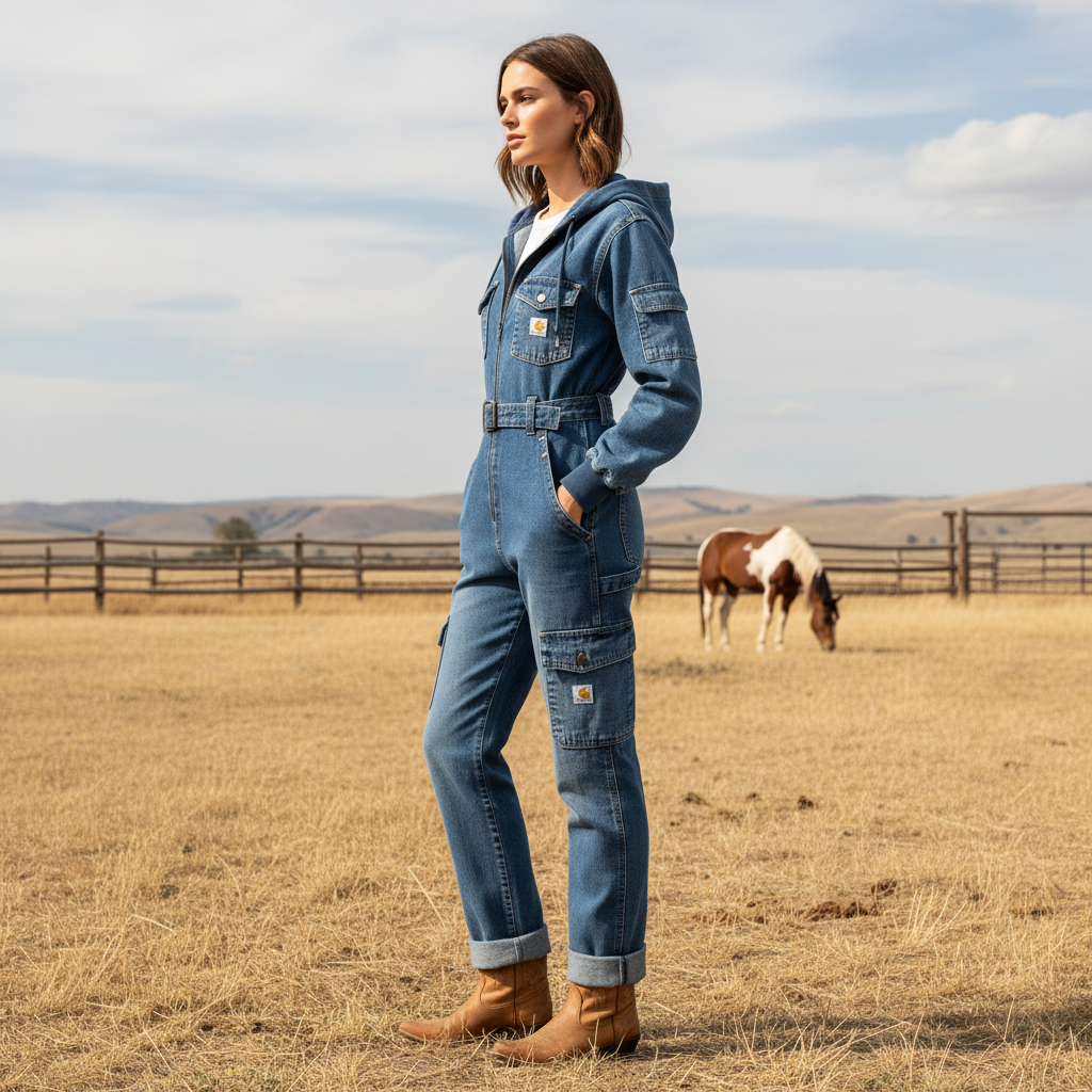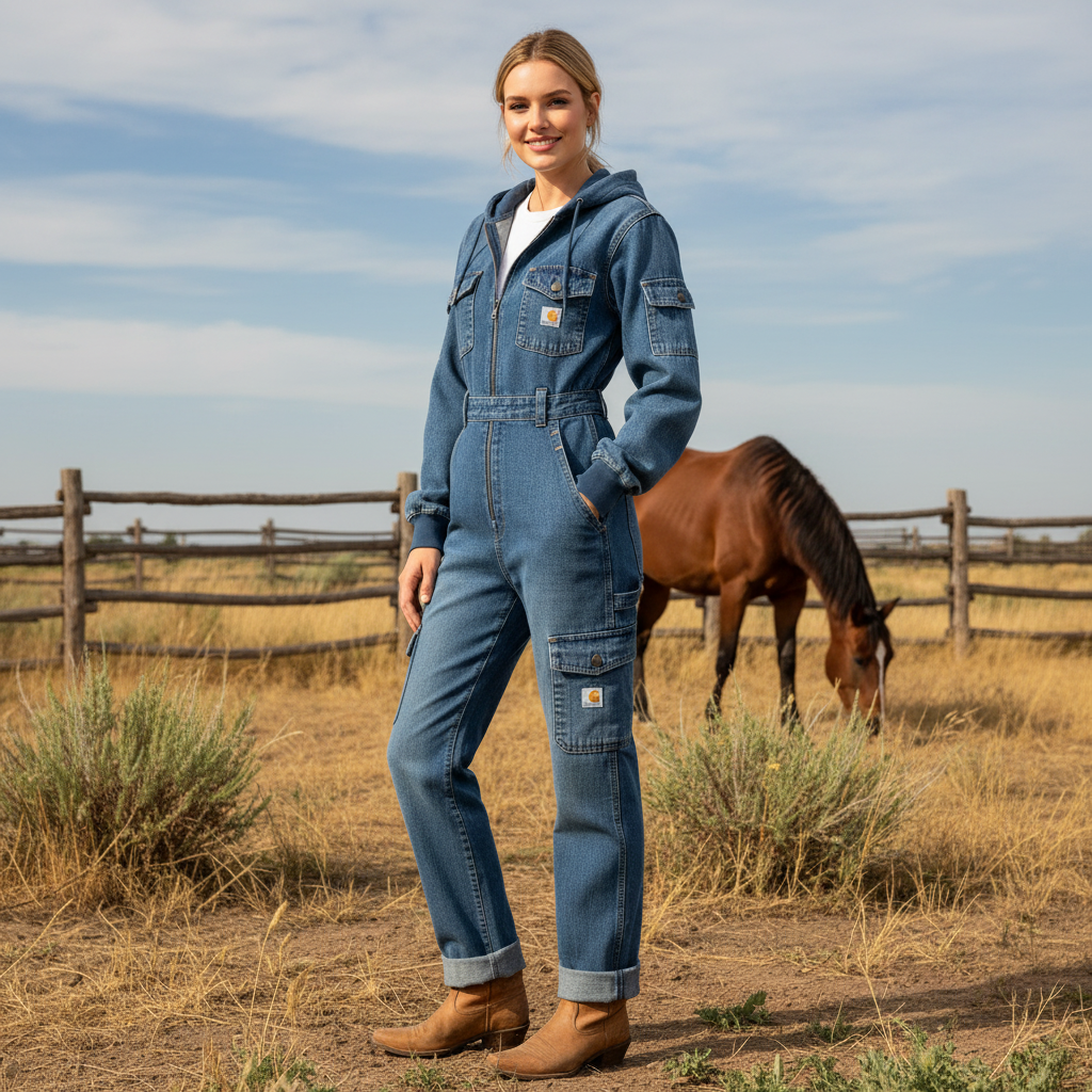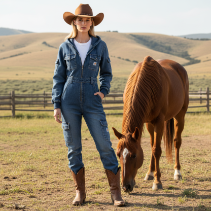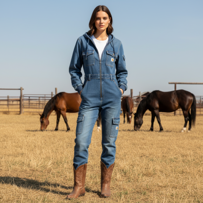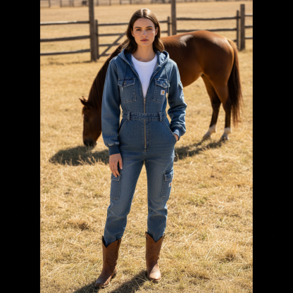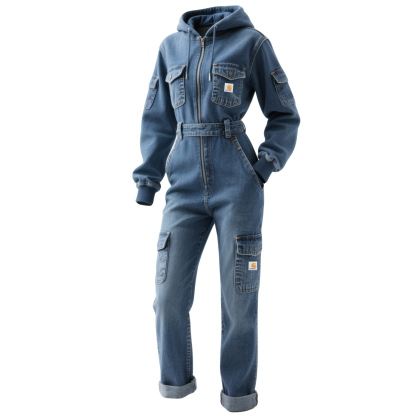Stylish Denim Jumpsuit with Hood - Perfect for Casual and Outdoor Adventures
