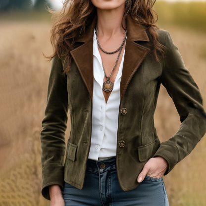 Stylish Double-Breasted Blazer with Unique Necklaces for Women