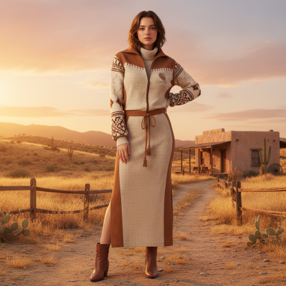 Stylish Hooded Dress with Ethnic Patterns and Drawstring Waist