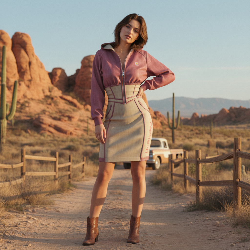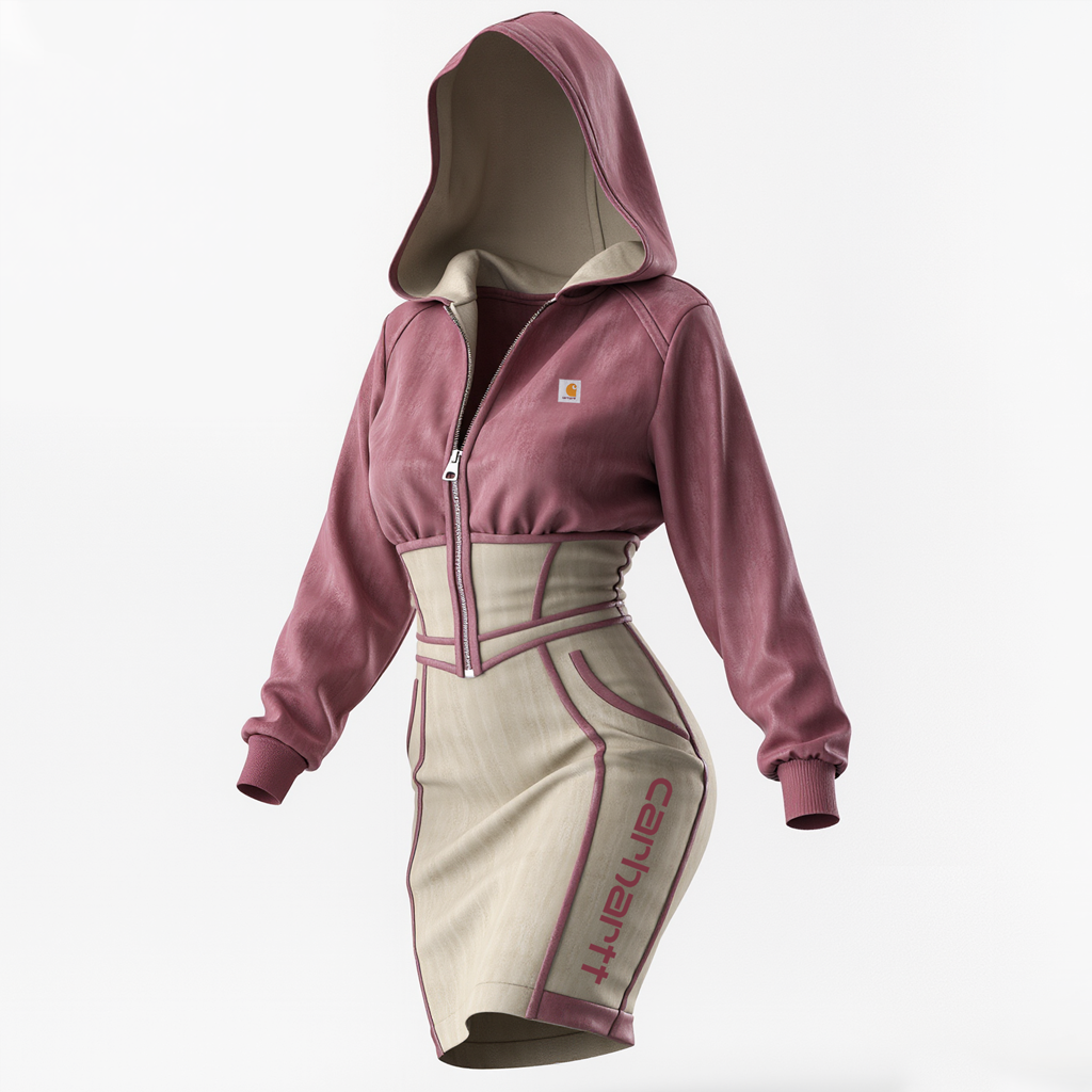 Stylish Hooded Dress with Half-Zip Closure and Contrast Sleeves