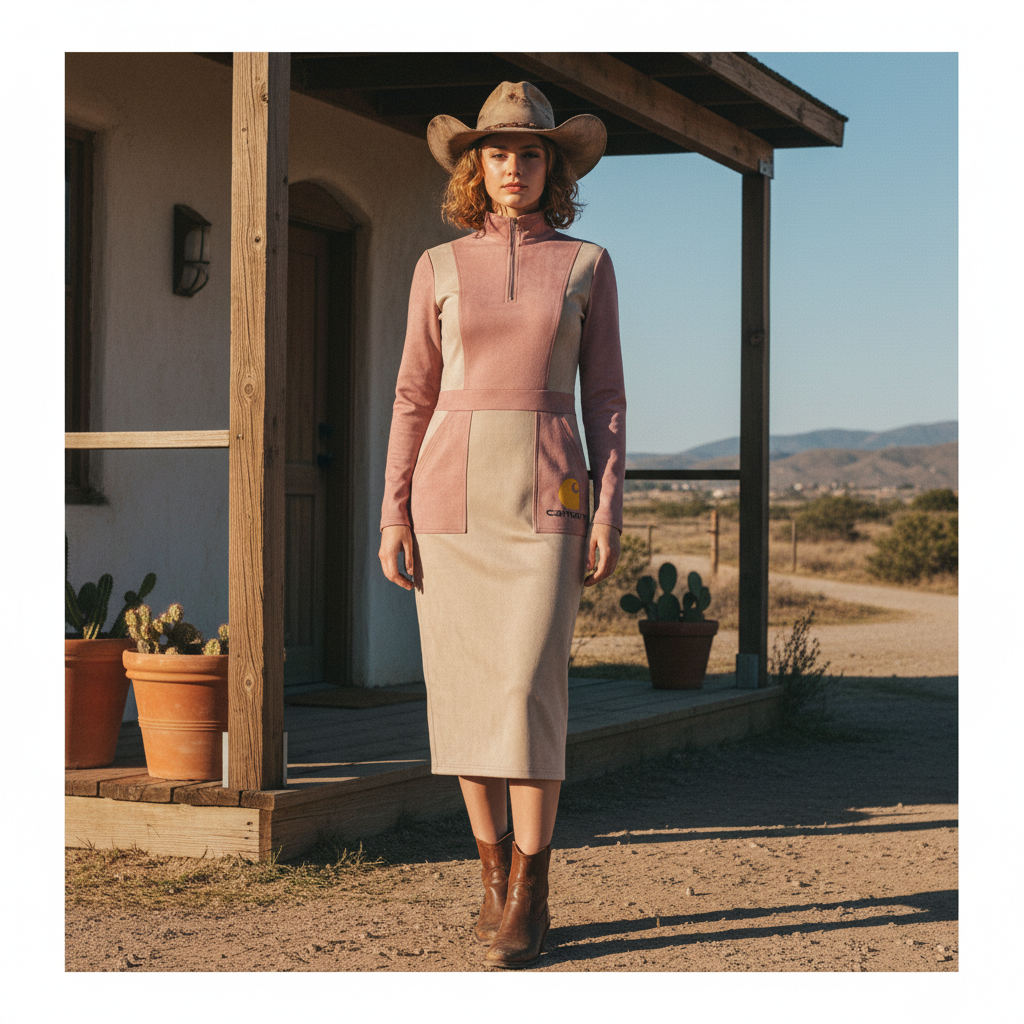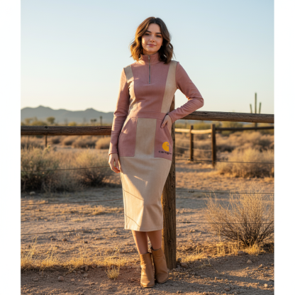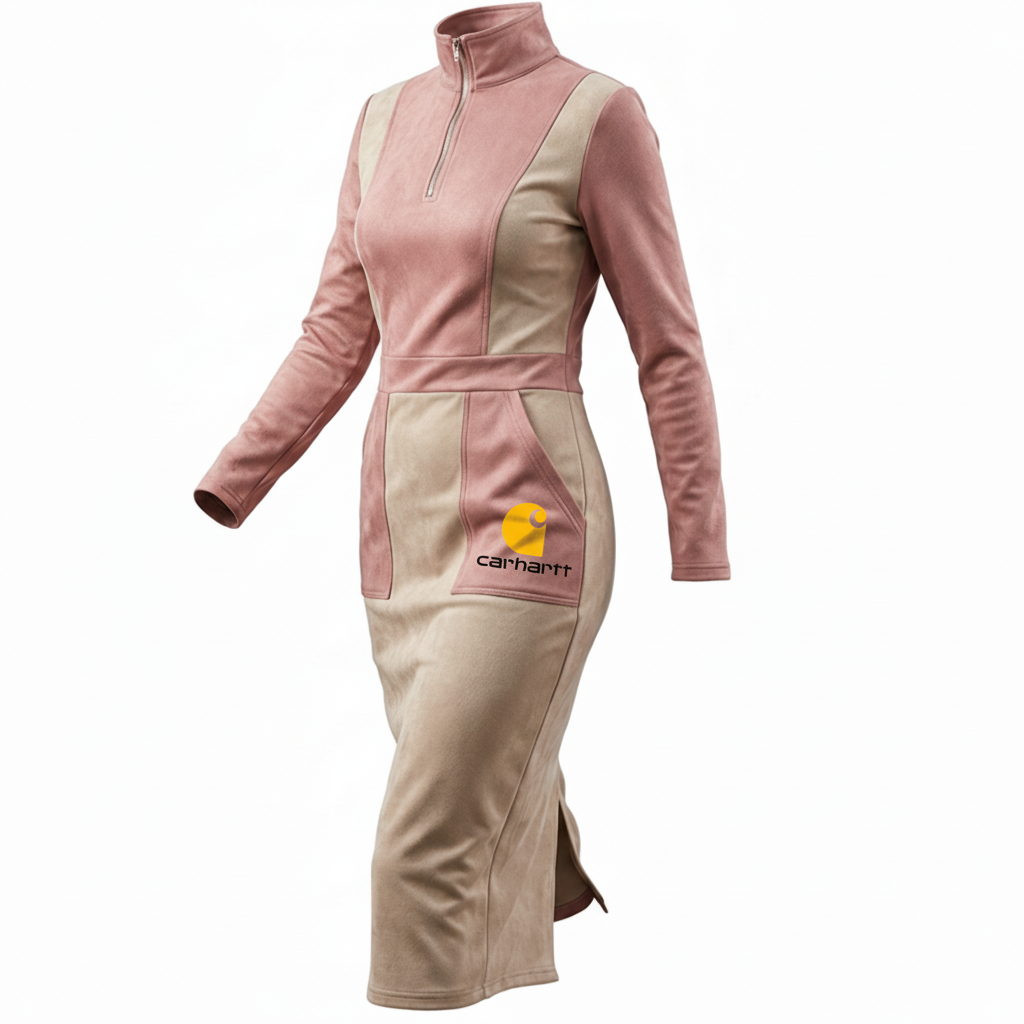 Stylish Hooded Dress with Half-Zip Closure and Contrast Sleeves
