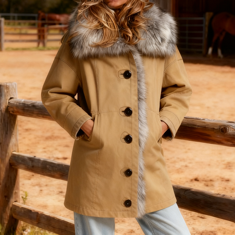 Stylish Western-Inspired Jacket with Faux Fur Trim for Women