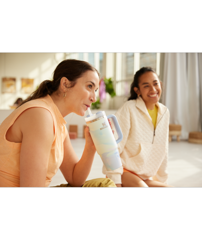 Start fresh in the new year. In pastels that pop, the Quencher H2.0 FlowState Tumbler is here to keep you hydrated. From picnics to carpooling, or nestled next to your yoga mat, double-wall vacuum insulation chills ice water all day long, and the slim base fits right in your cupholder. The advanced FlowState lid rotates through three positions: a straw opening to hold the reusable straw in place, a drink opening, and a full-cover top that resists splashes. Make hydration your feel good essential.