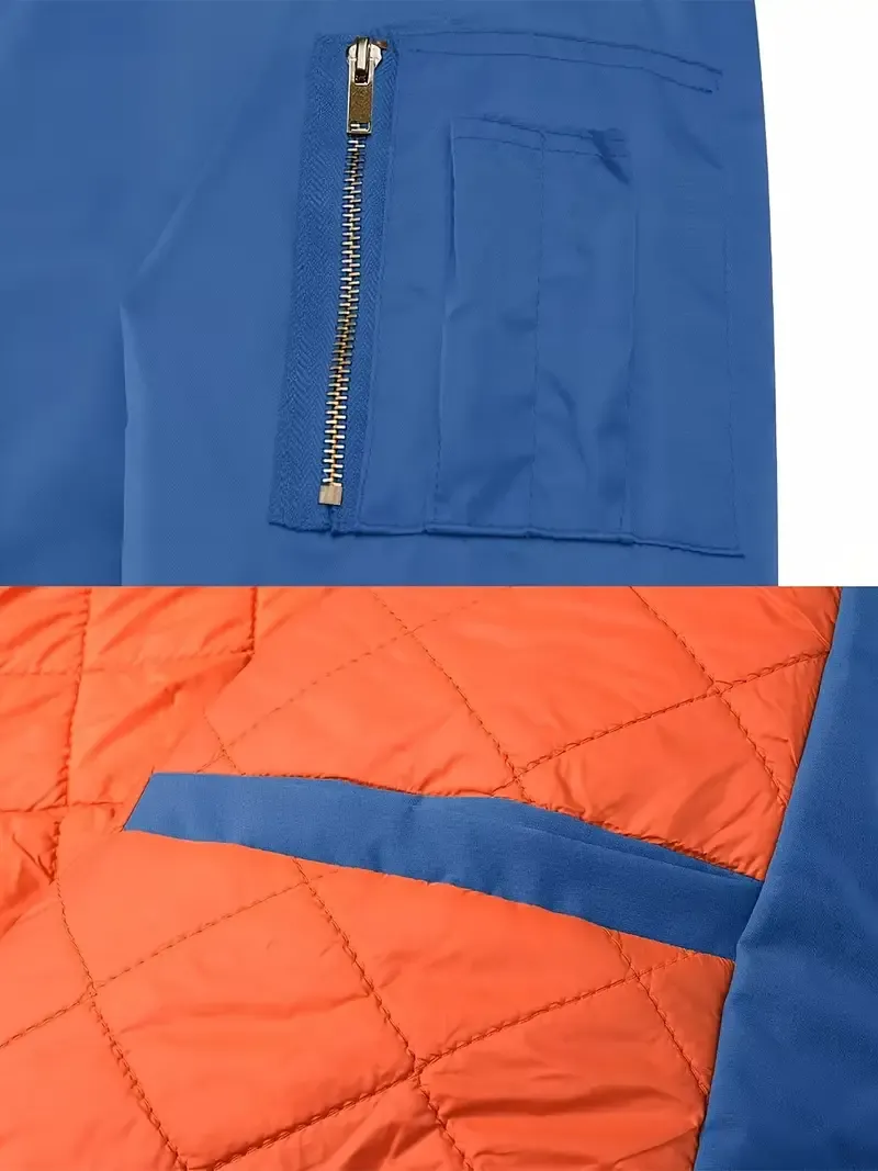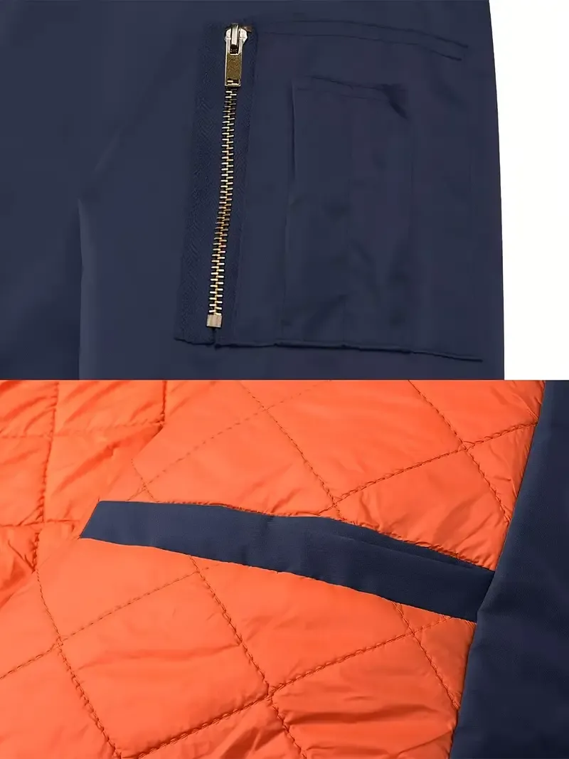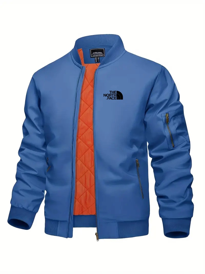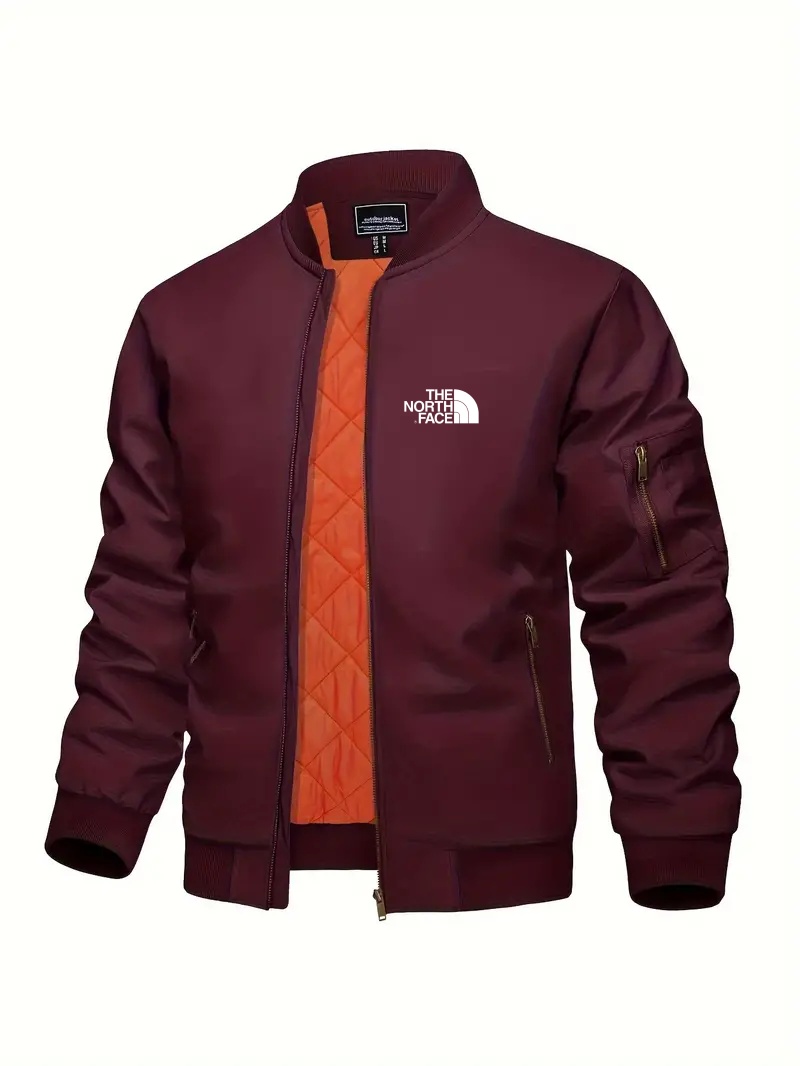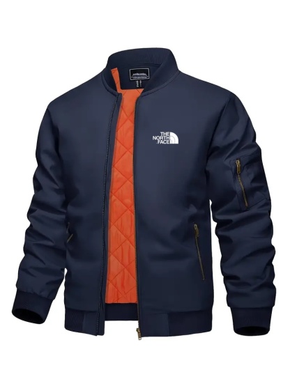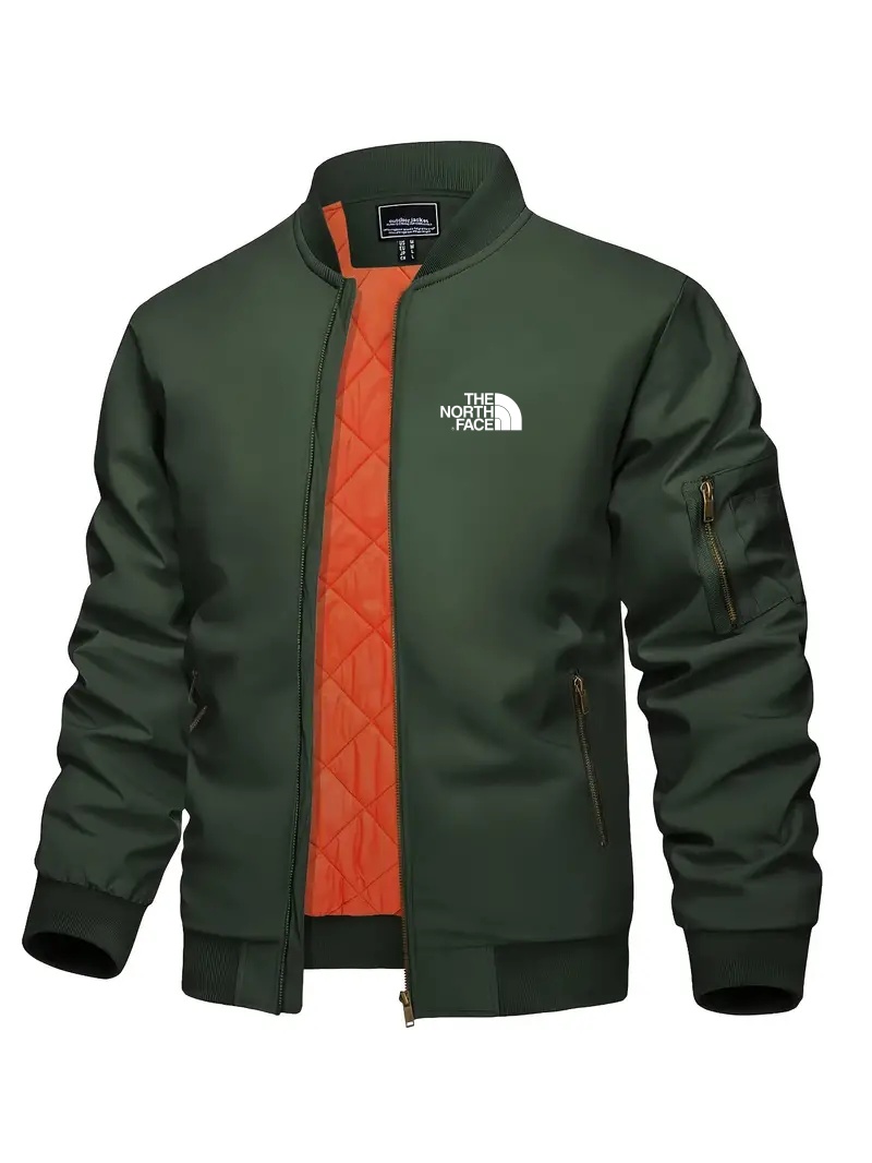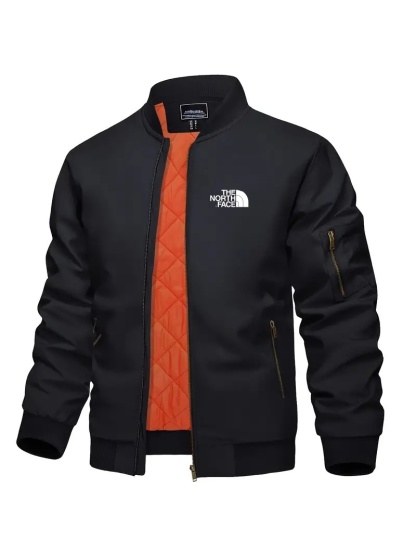 The NorTHEth Face Men's Bomber Jacket - Full zip, Warm, Windproof, Waterproof, Orange quilted lining, Smart casual, Ribbed collar, cuffs and hem, Multi-pocket design.